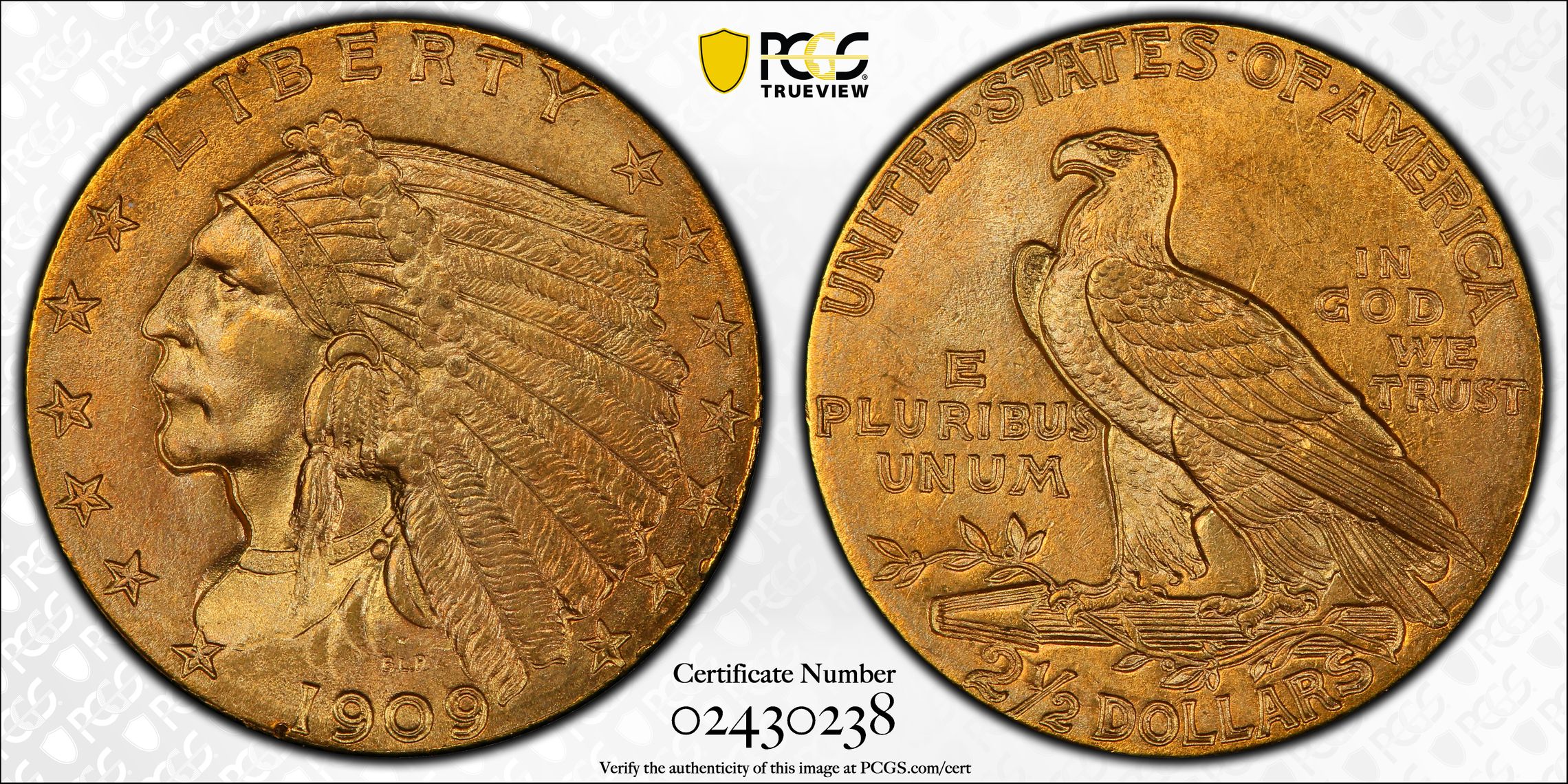 此证书是目前出现在 DLH Set Registry库存和的一个set或多个set,其中包括 D. L. Hansen 2 1/2 Gold Indian (1908-1929)