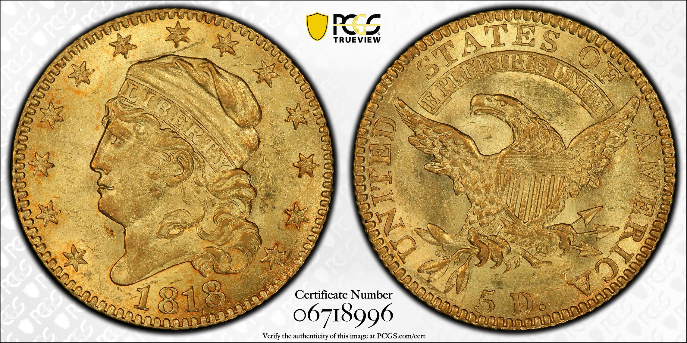 此证书是目前出现在 DLH Set Registry库存和的一个set或多个set,其中包括 D. L. Hansen Five Dollar Gold (1795-1838)