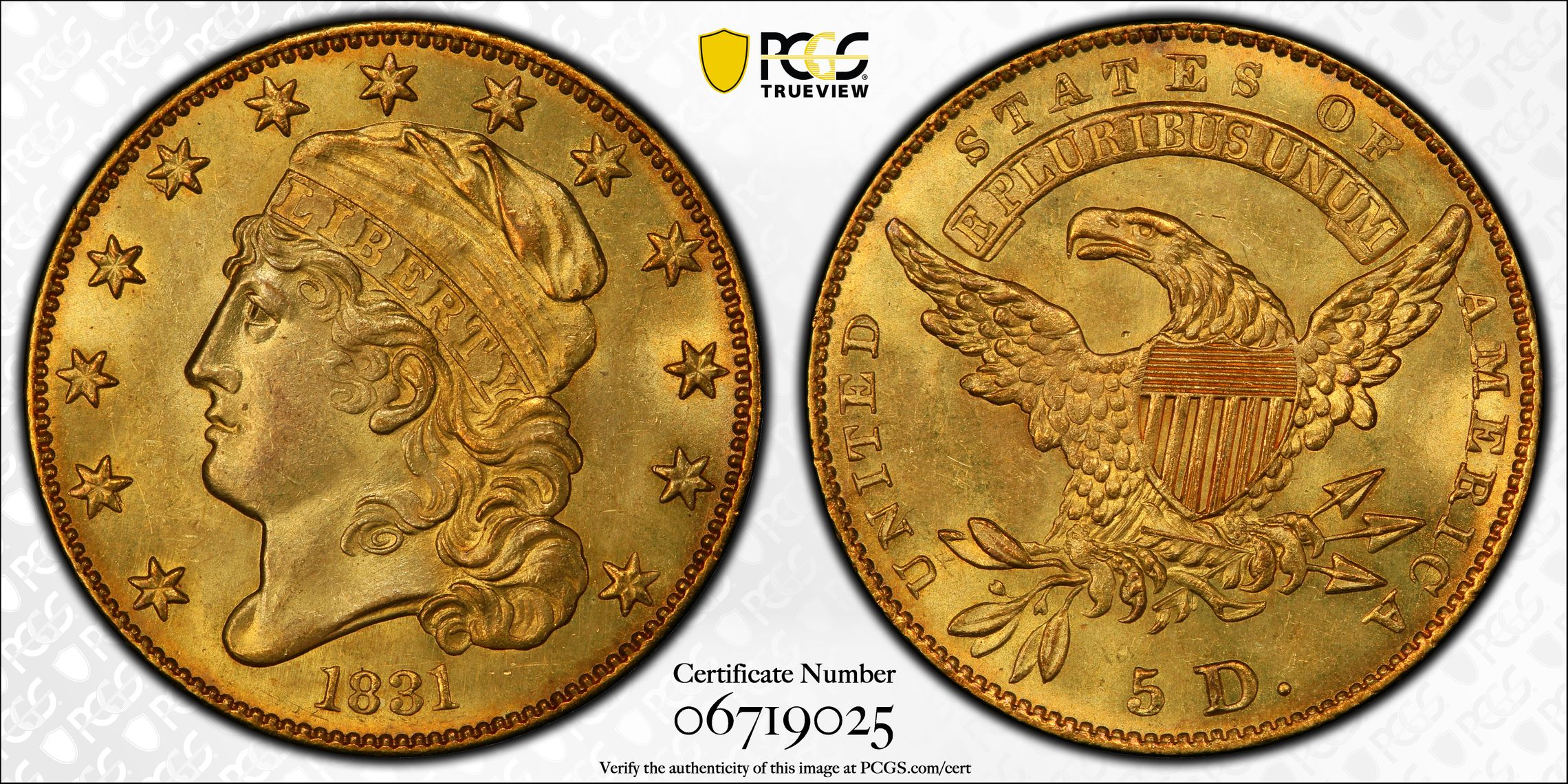此证书是目前出现在 DLH Set Registry库存和的一个set或多个set,其中包括 D.L. Hansen Collection. Gold Type Set. (1795-1933)