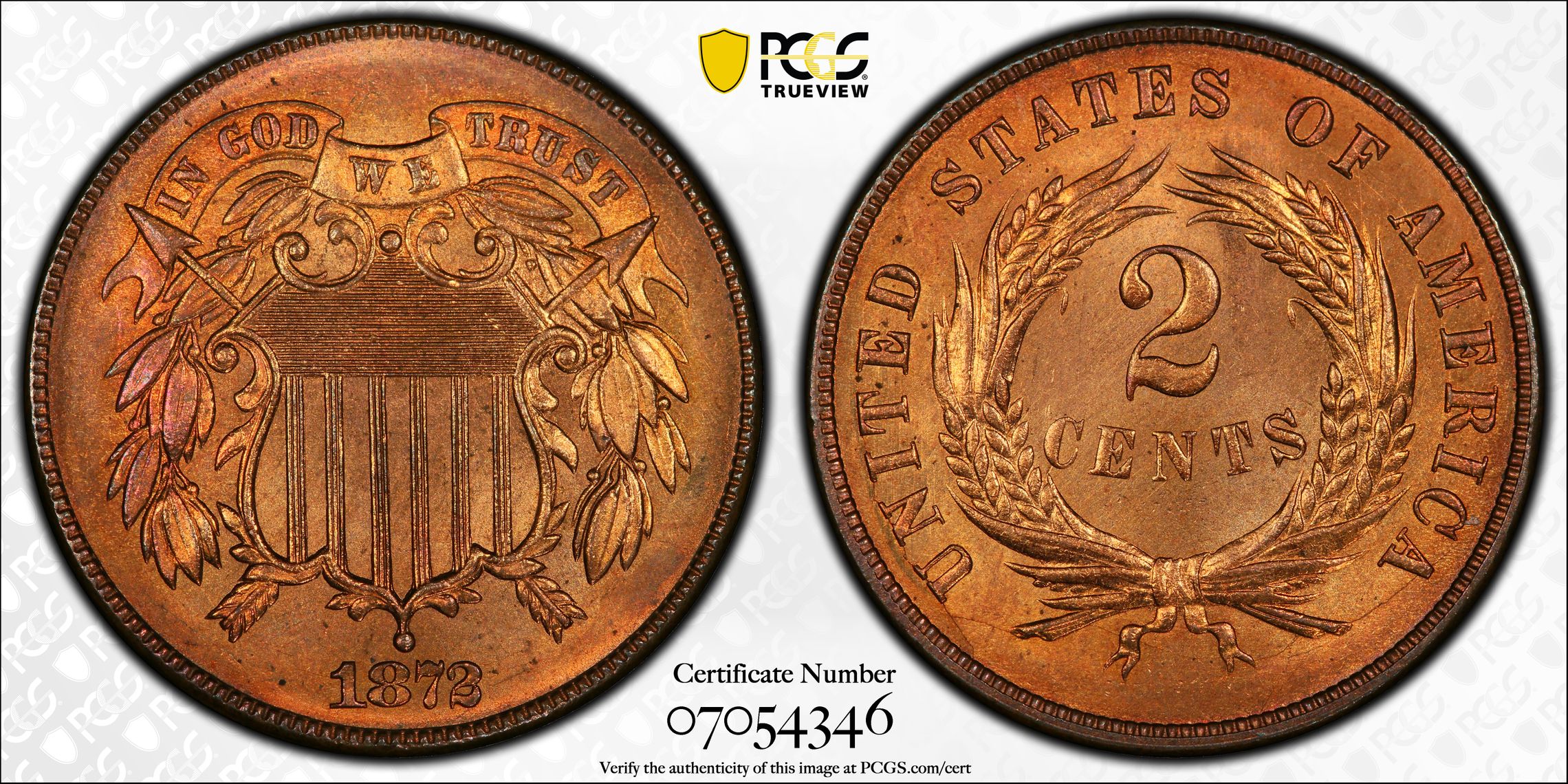 此证书是目前出现在 DLH Set Registry库存和的一个set或多个set,其中包括 D. L Hansen. Shield Two Cent Major Varieties (1864-1872)