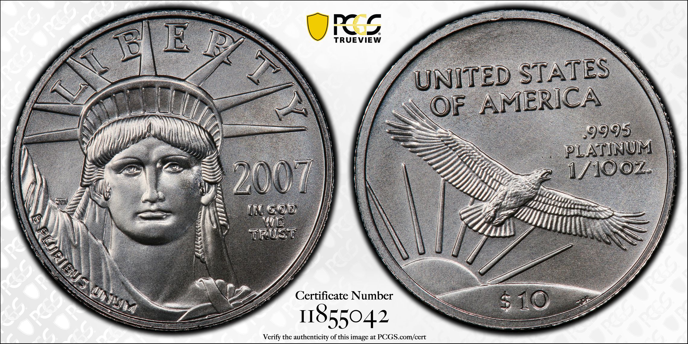此证书是目前出现在 schmitz7 Set Registry库存和的一个set或多个set,其中包括 Michigan $10 Platinum Eagles