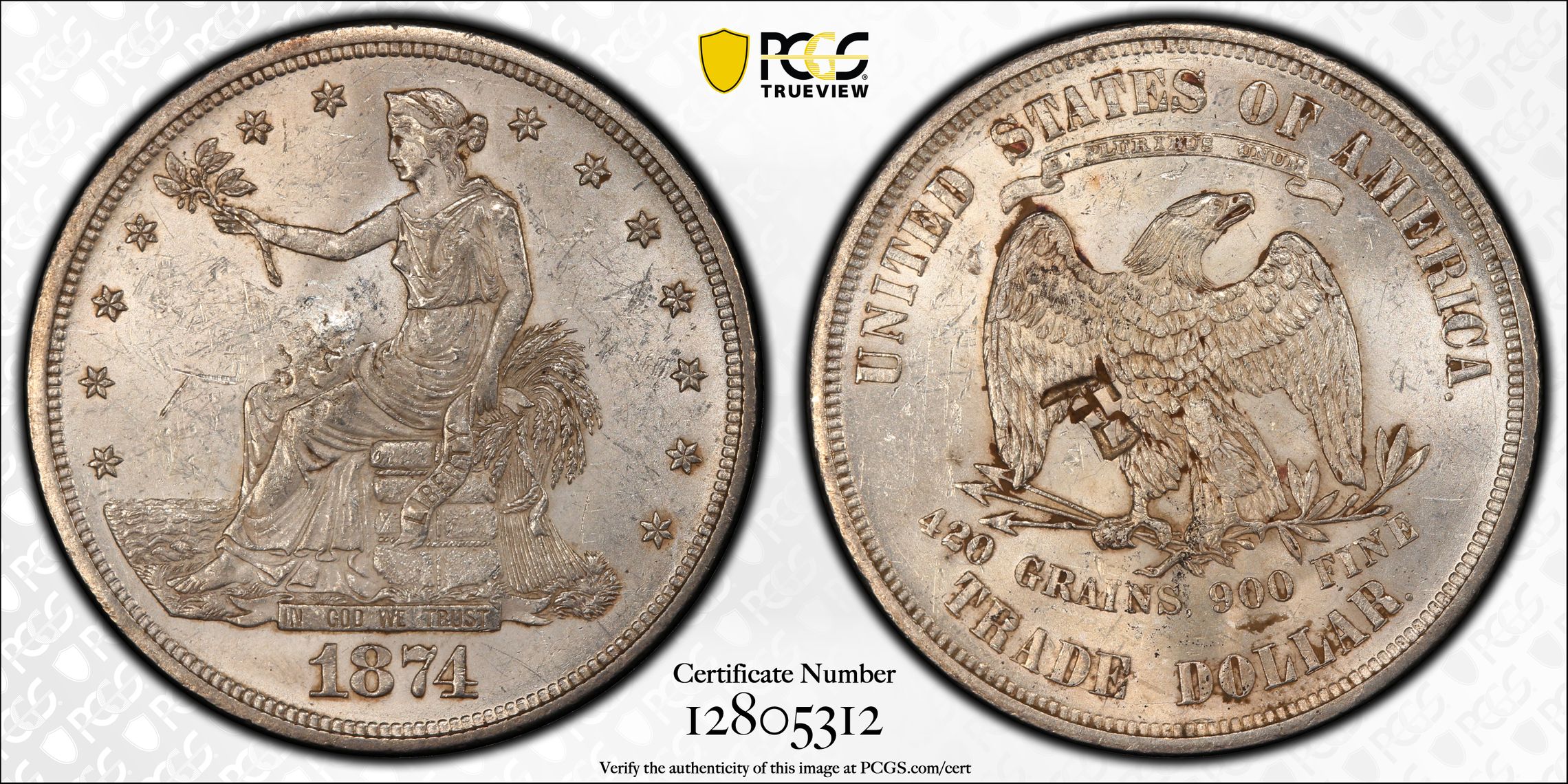 此证书是目前出现在 Black Cat Set Registry库存和的一个set或多个set,其中包括 Black Cat - Trade Dollars Chop Mark Set, Circulation Strikes (1873-1878)