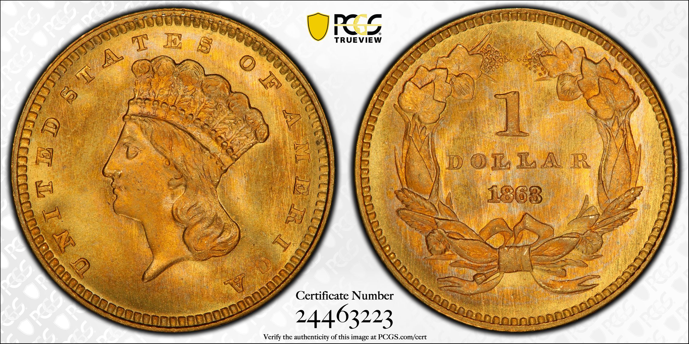 根据 PCGS 认证数据库,请求的认证编号被定义为以下内容: