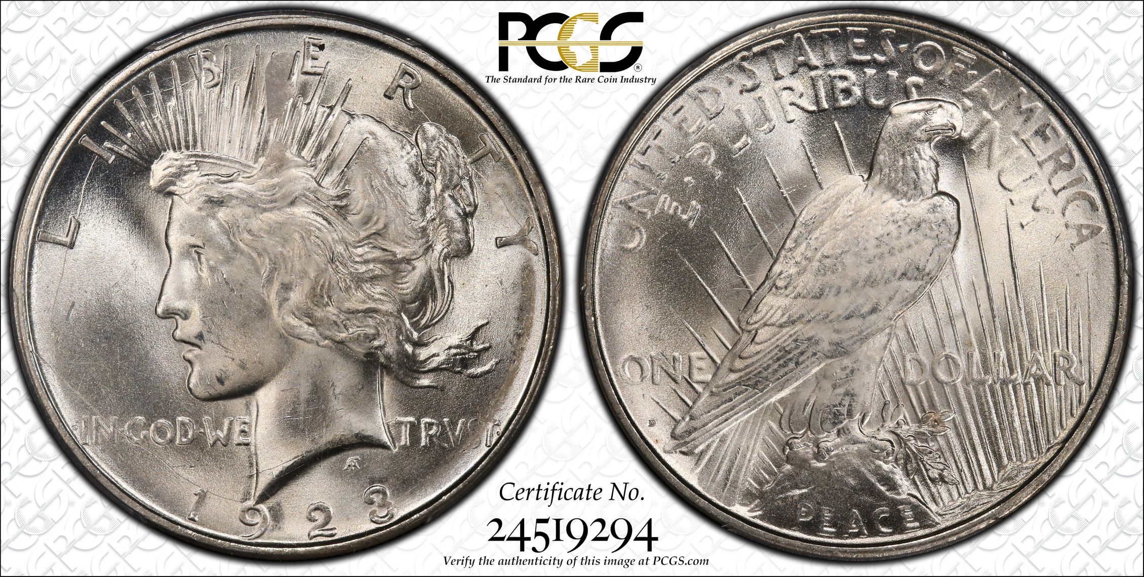 根据 PCGS 认证数据库,请求的认证编号被定义为以下内容: