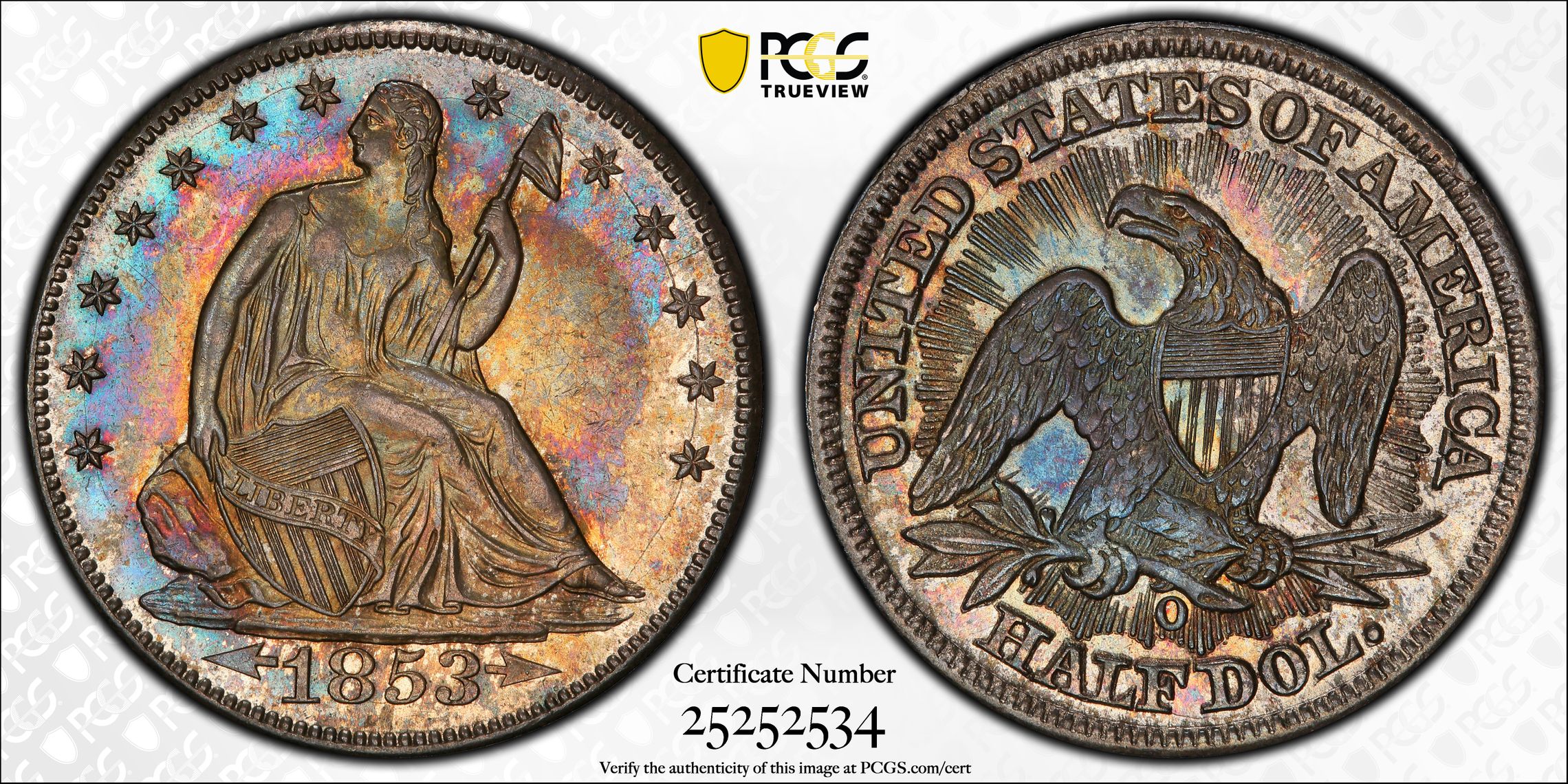 此证书是目前出现在 DLH Set Registry库存和的一个set或多个set,其中包括 D. L. Hansen Liberty Seated Half Dollars. (1839-1891)