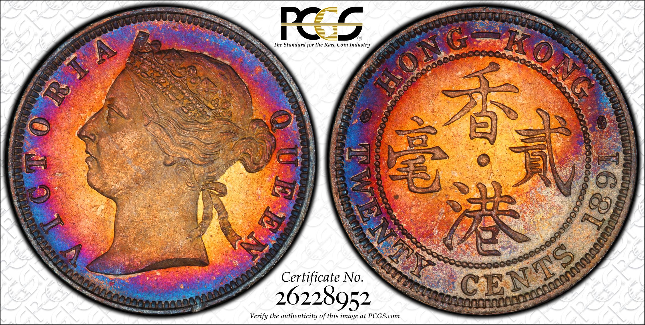 此证书是目前出现在General Error.Set Registry库存和的一个set或多个set,其中包括 Osmund’s HK Victoria 20 Cents