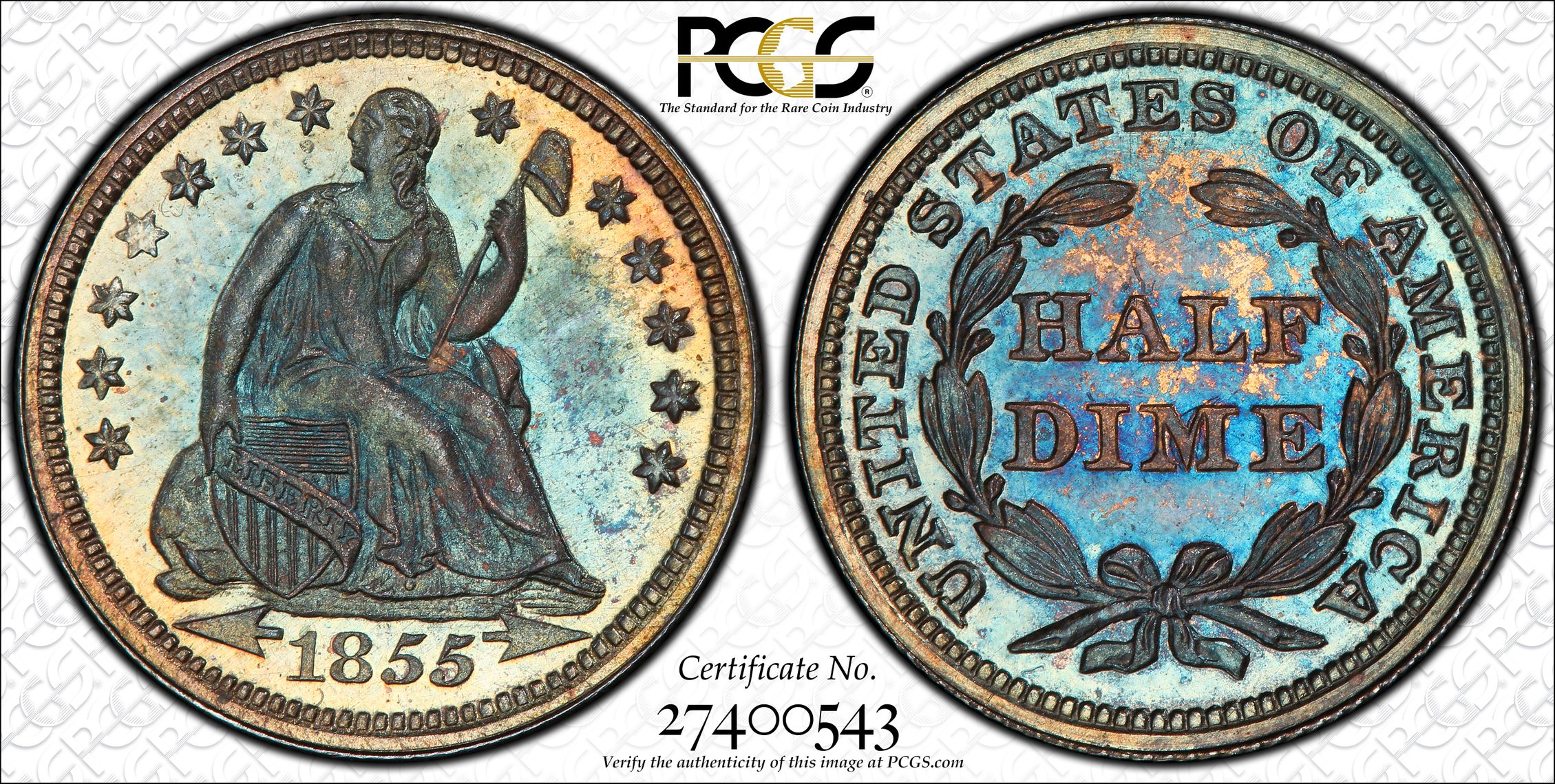 此证书是目前出现在 DLH Set Registry库存和的一个set或多个set,其中包括 D. L. Hansen. Half Dime Circulation & Proof (1837-1873)