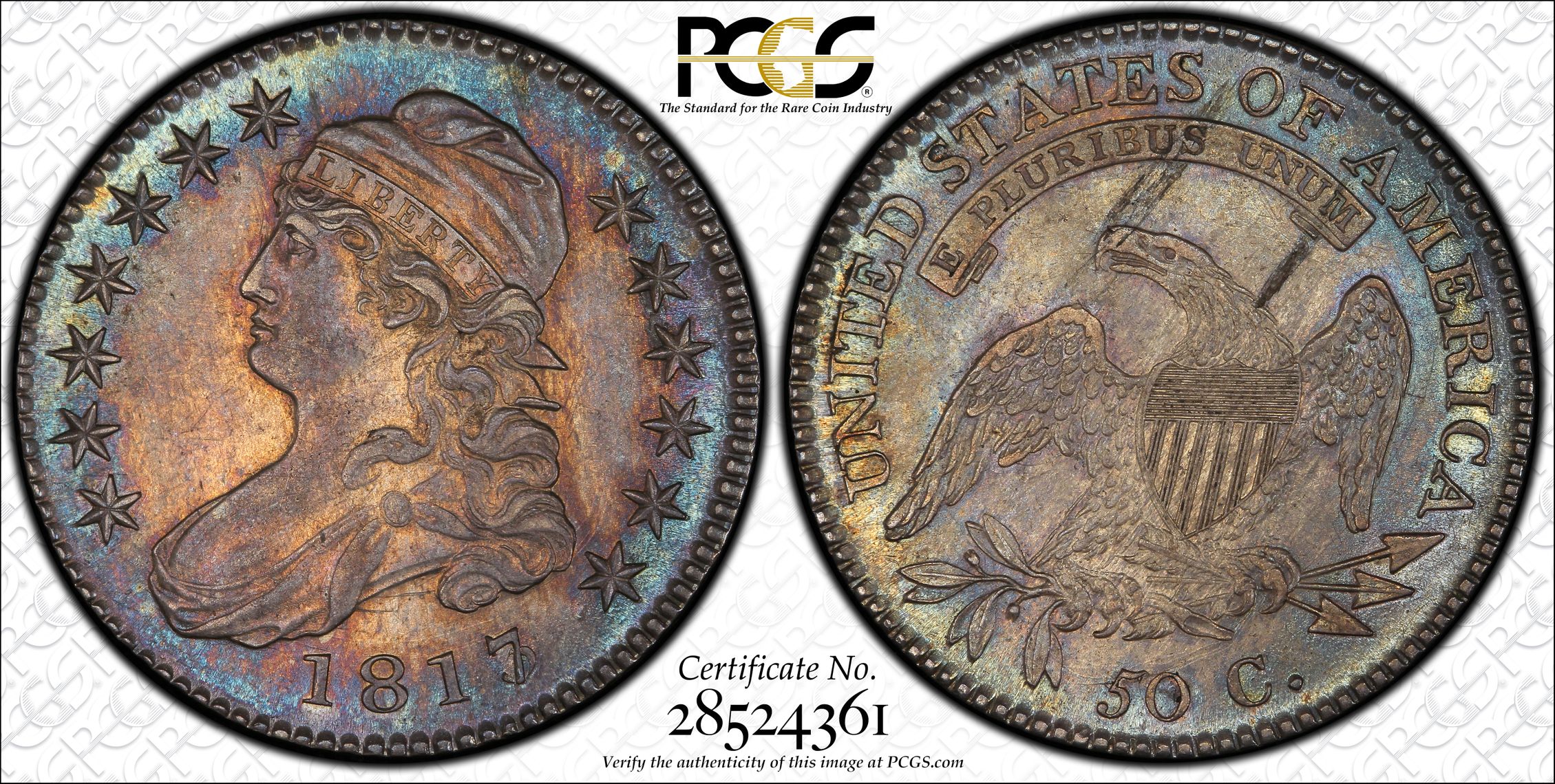 此证书是目前出现在 DLH Set Registry库存和的一个set或多个set,其中包括 D. L. Hansen. Bust Half Dollar. Major Varieties