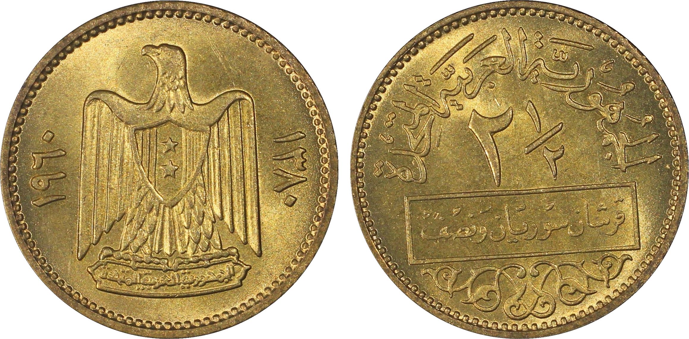 此证书是目前出现在 Brandywine Set Registry库存和的一个set或多个set,其中包括 Brandywine Syria UAR Complete Circulation Strikes Set (1958 - 1960)