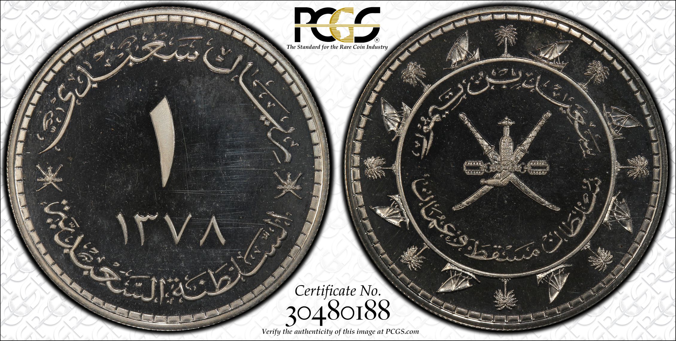 PCGS 钱币信息 | 认证编号 #30480188 - AH1378 (1959) Muscat & Oman S. Rial