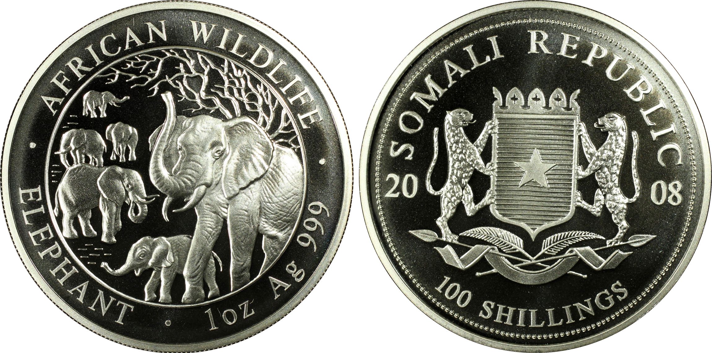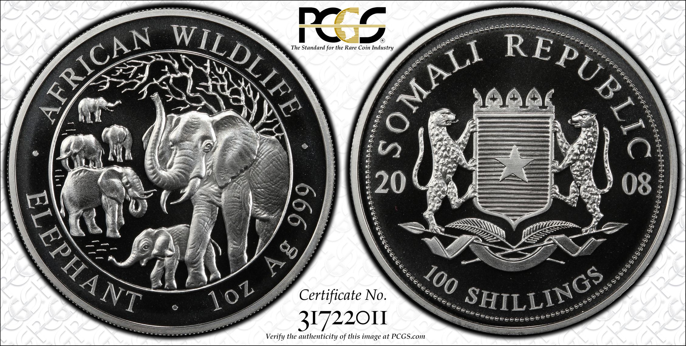 此证书是目前出现在 Brandywine Set Registry库存和的一个set或多个set,其中包括 Brandywine Somalia Silver Elephant Proof 100 Shillings Set