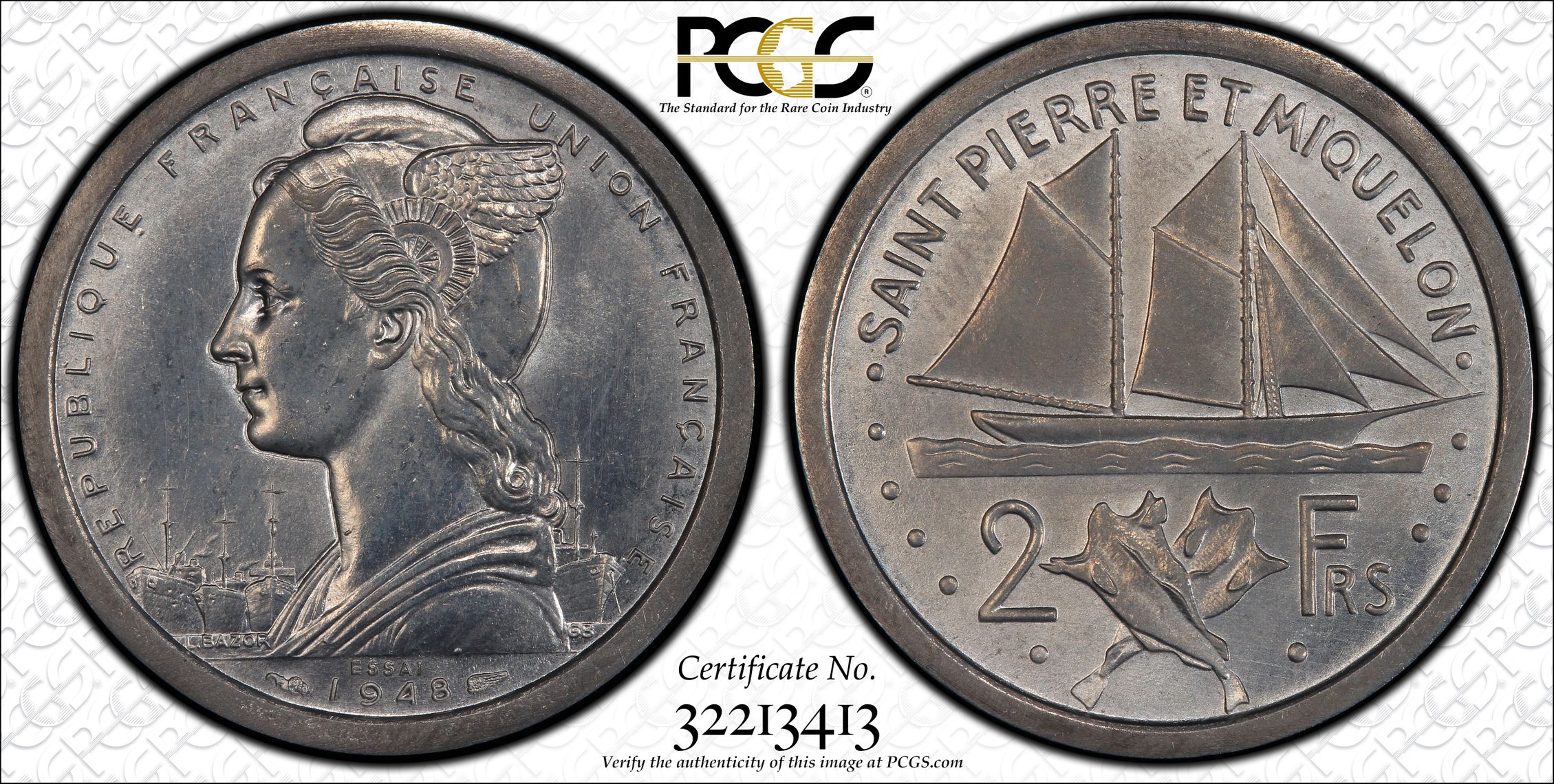 PCGS 钱币信息 | 认证编号 #32213413 - 1948 St. Pierre & Miquelon P2 Fr