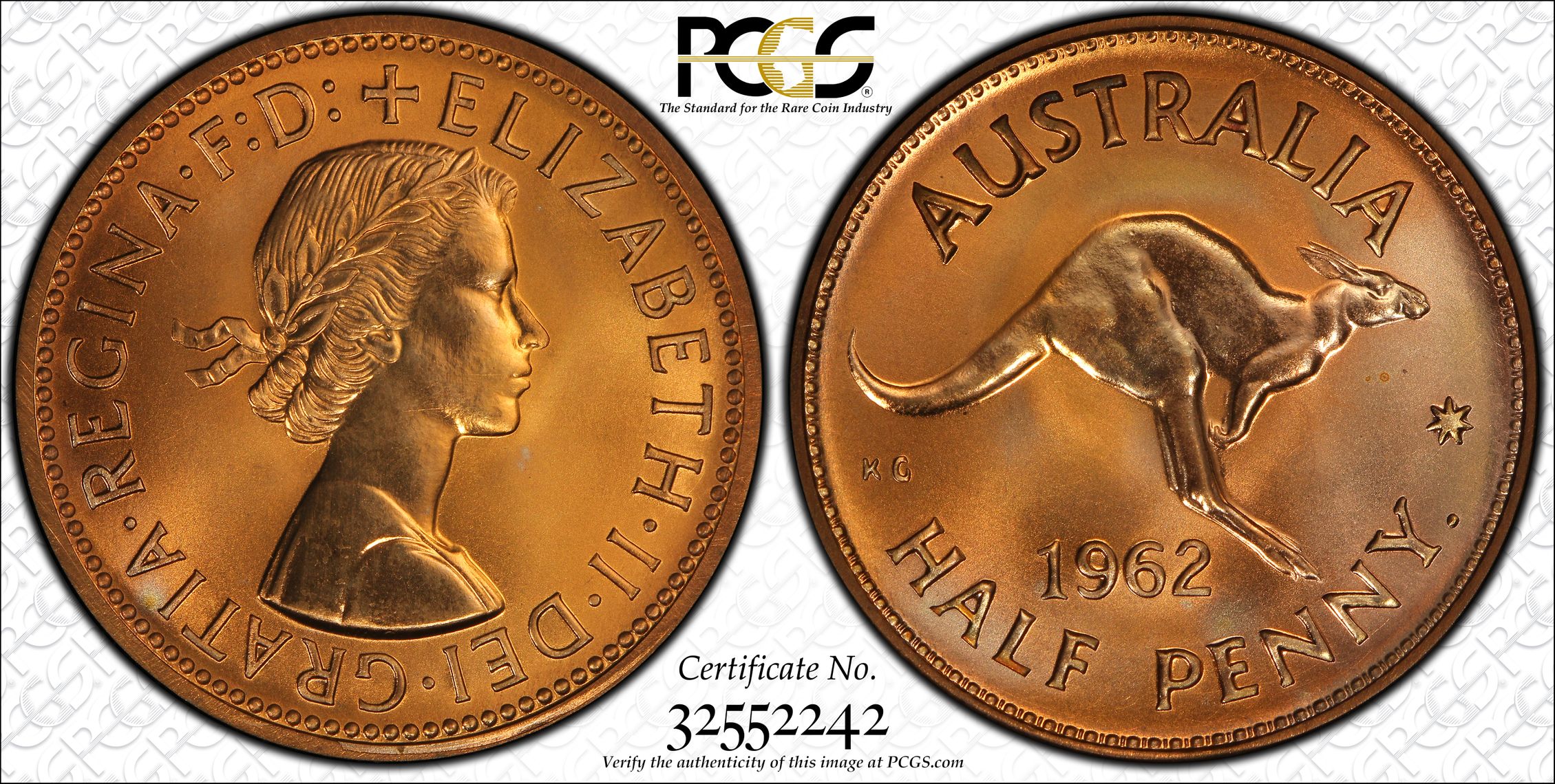 PCGS 钱币信息 | 认证编号 #32552242 - 1962 Y. (p) Australia 1/2D