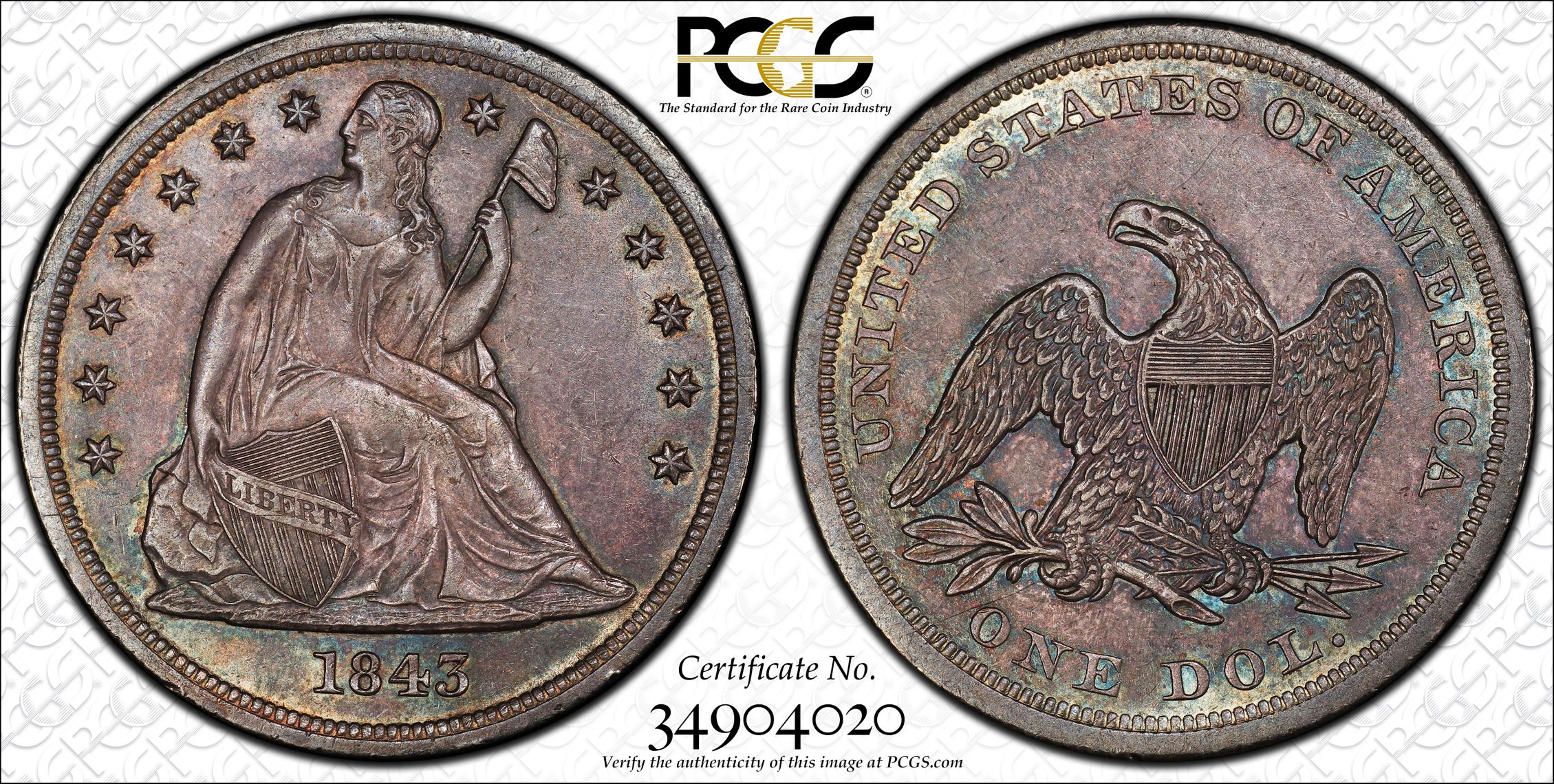 此证书是目前出现在 VanceOglesbee Set Registry库存和的一个set或多个set,其中包括 Fairfield Collection Liberty Seated Dollars Circulation Strikes and Proof