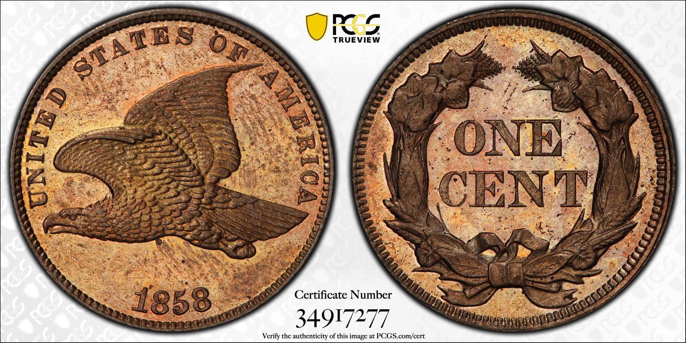 此证书是目前出现在 DLH Set Registry库存和的一个set或多个set,其中包括 D. L. Hansen Flying Eagle Cents. (1856-1858)