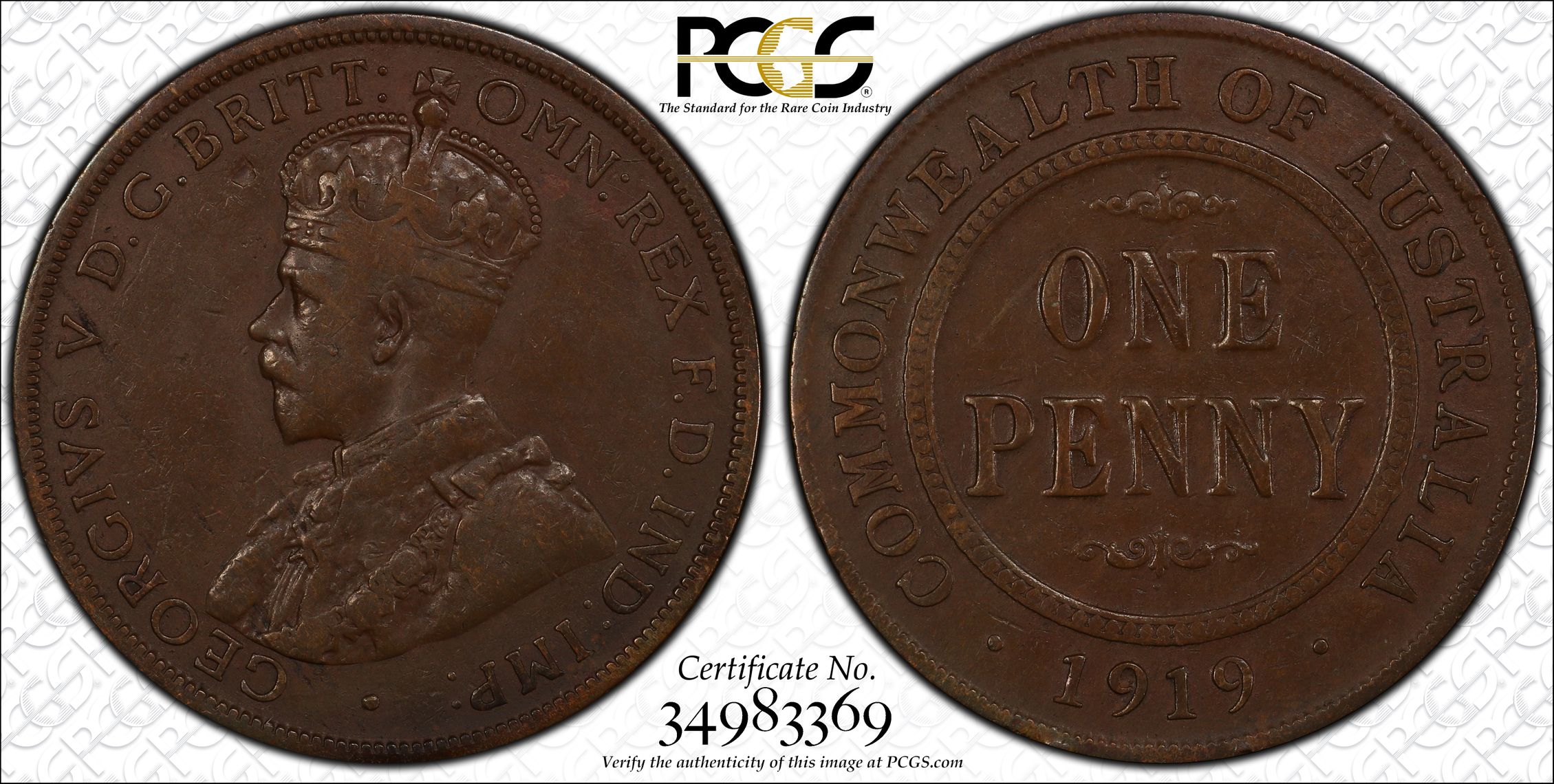 PCGS 钱币信息 | 认证编号 #34983369 - 1919 .//. Australia 1D