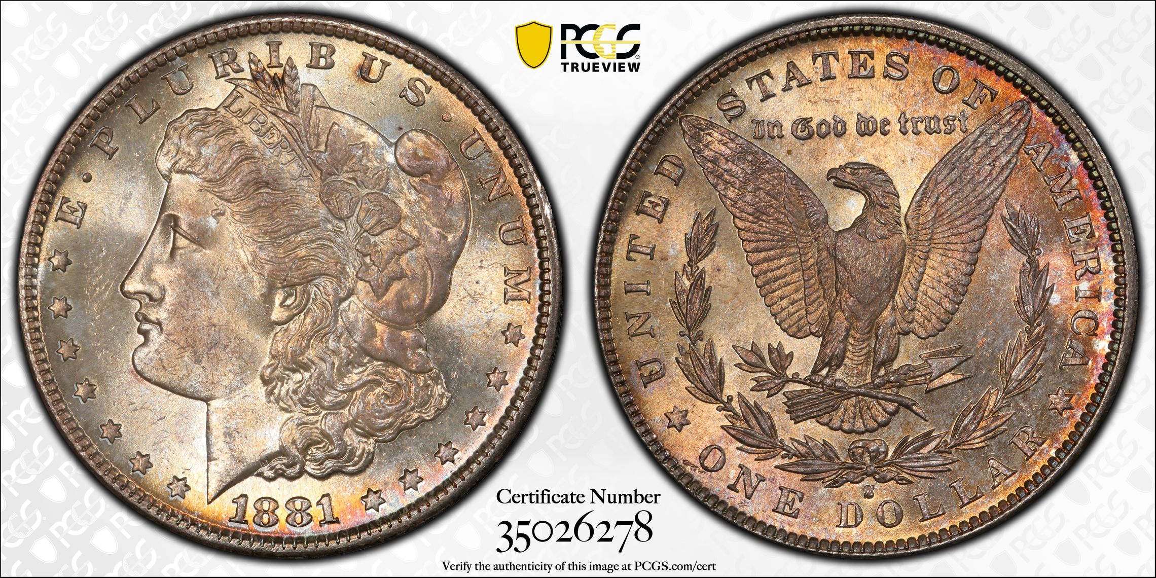 根据 PCGS 认证数据库,请求的认证编号被定义为以下内容: