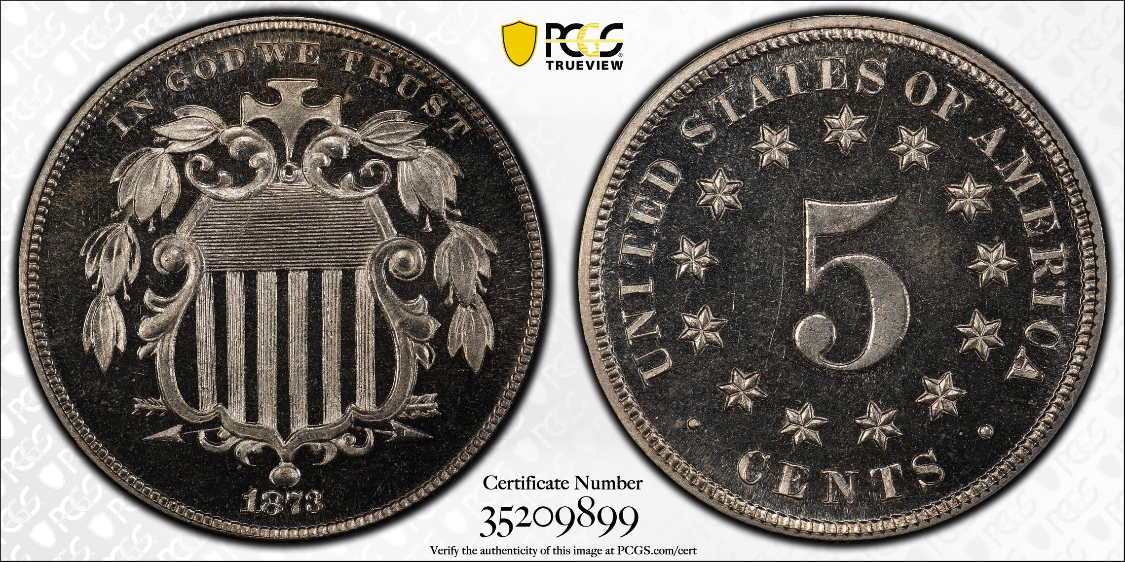 此证书是目前出现在 DLH Set Registry库存和的一个set或多个set,其中包括 D. L. Hansen. Shield Nickel Circulation and Proof (1866-1883)