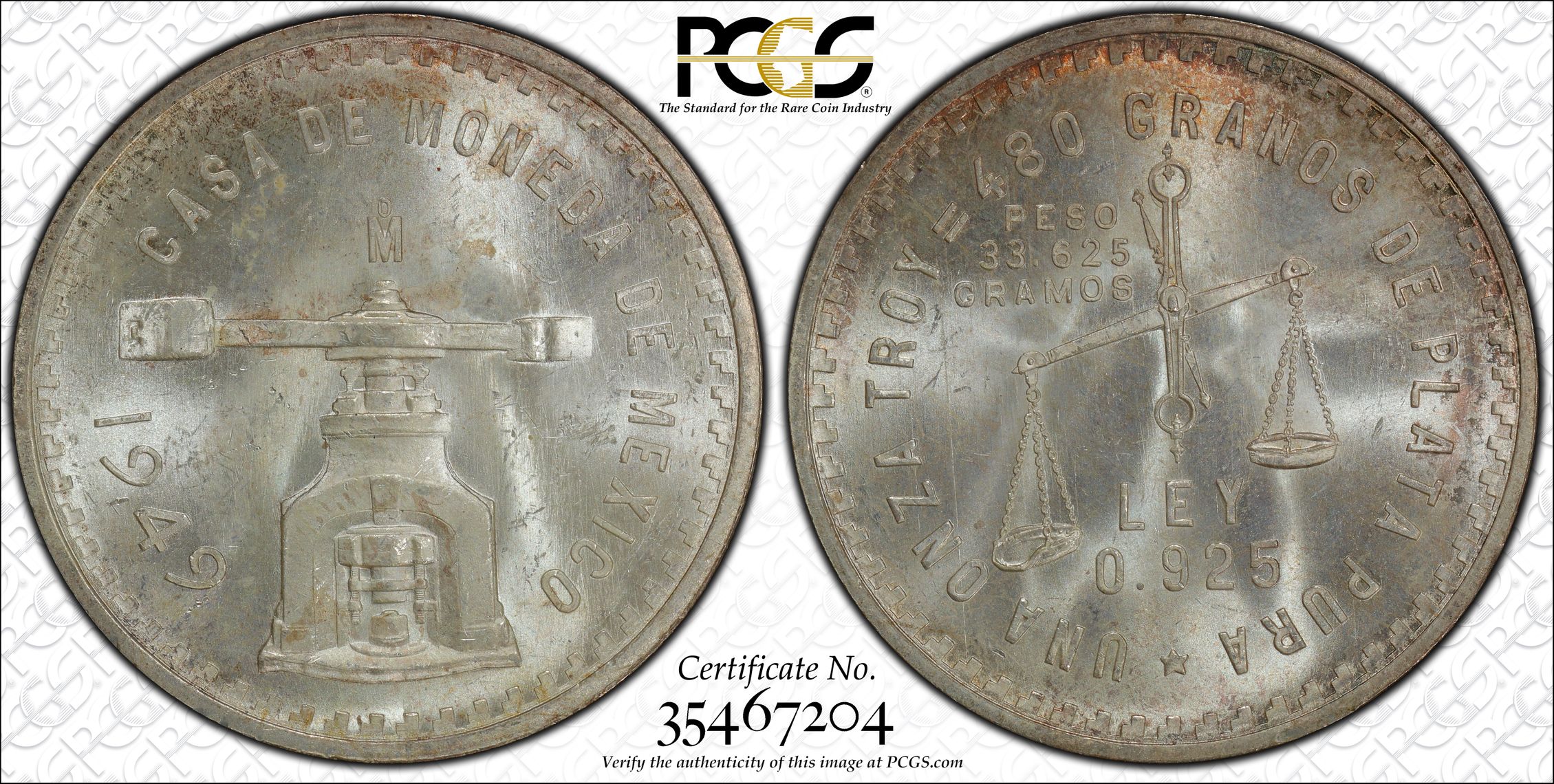 根据 PCGS 认证数据库,请求的认证编号被定义为以下内容: