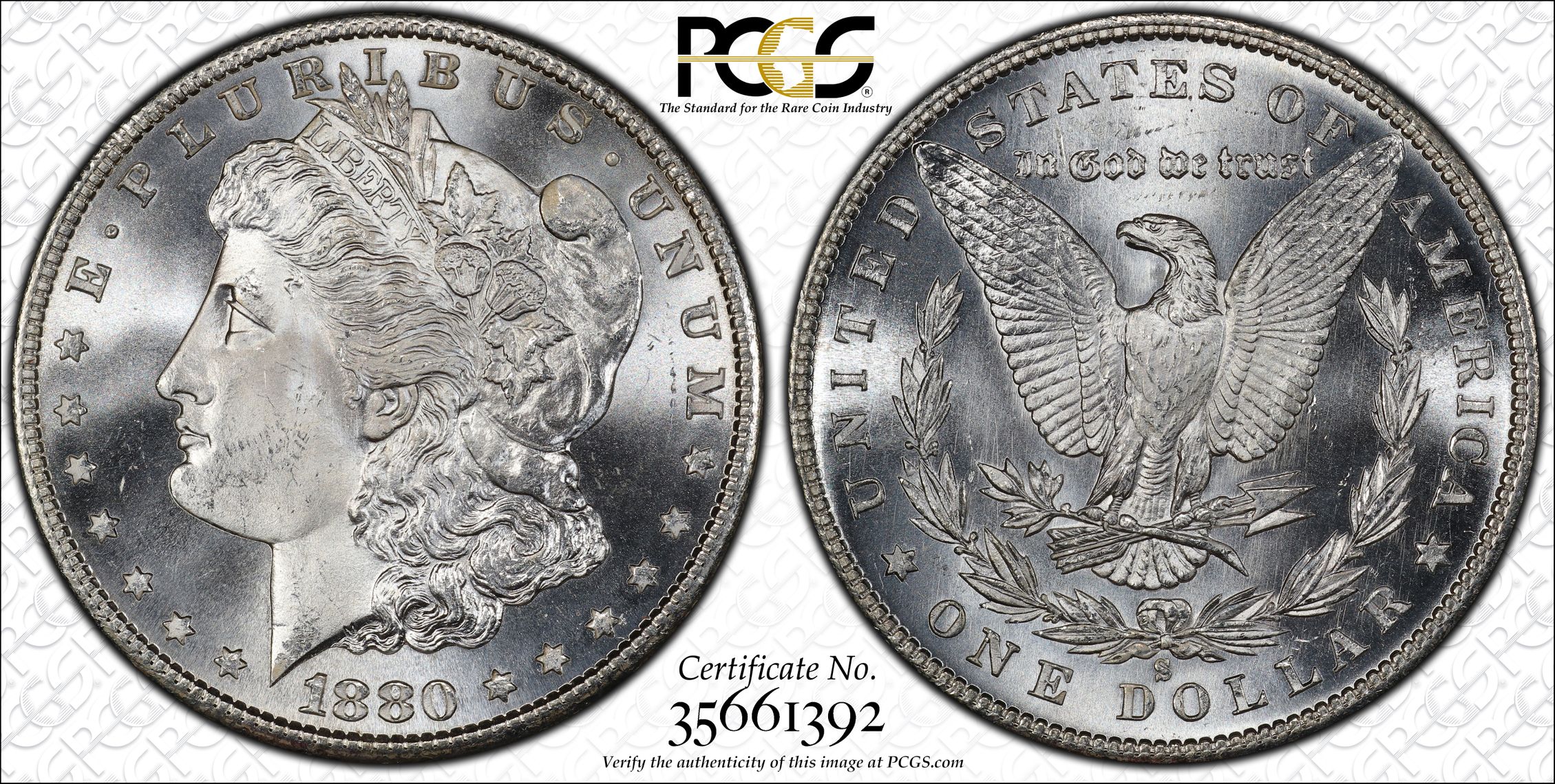 此证书是目前出现在 jeffhenderson Set Registry库存和的一个set或多个set,其中包括 Stella Collection of Morgan Silver Dollars