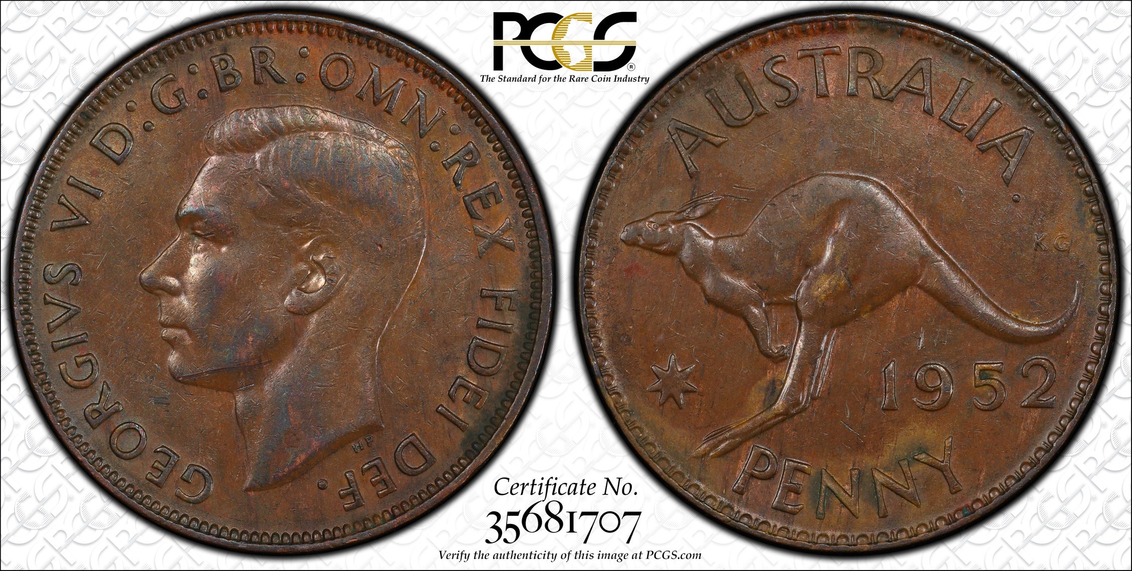 PCGS 钱币信息 | 认证编号 #35681707 - 1952 A. (p) Australia 1D