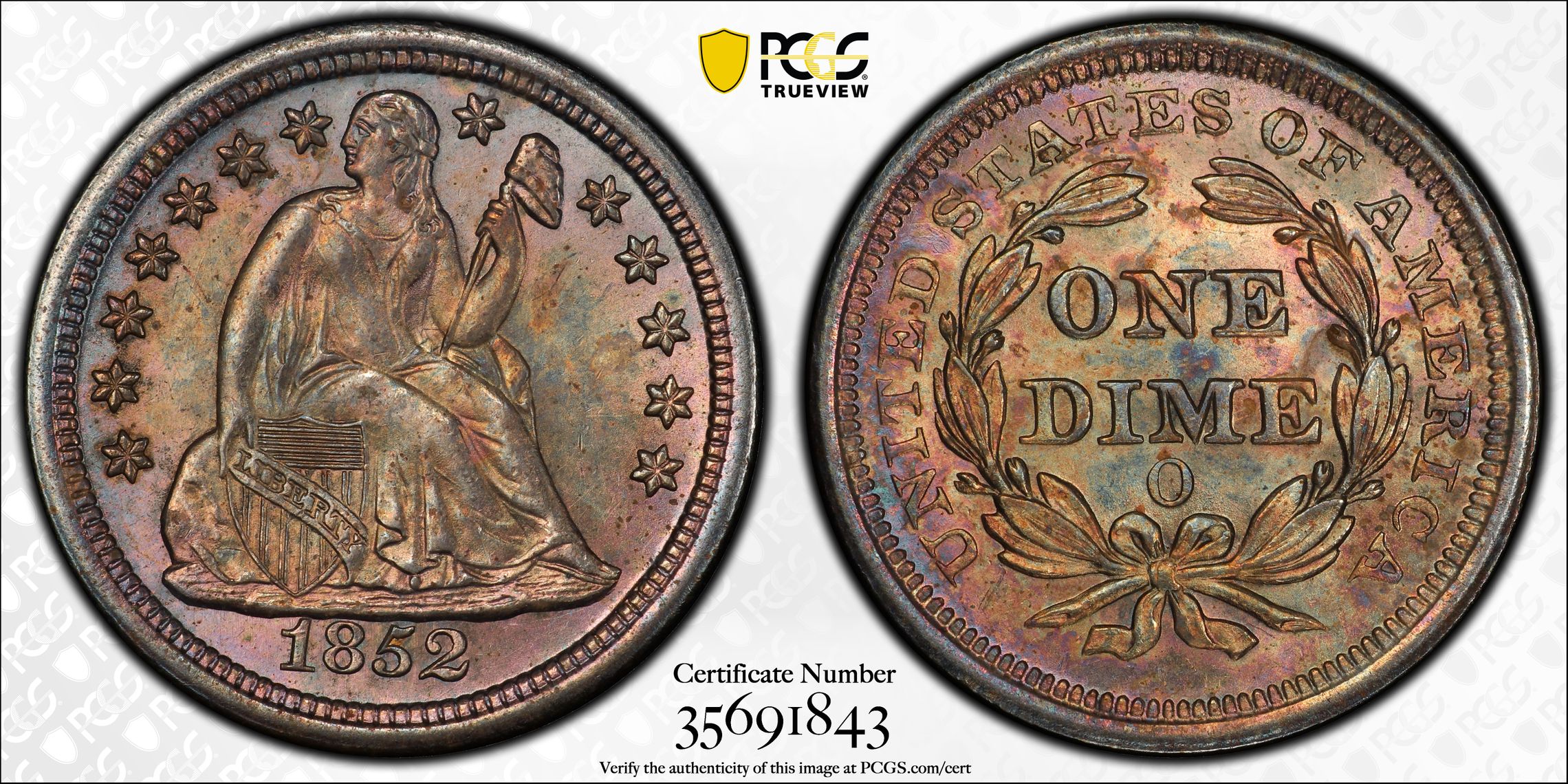 此证书是目前出现在 DLH Set Registry库存和的一个set或多个set,其中包括 D. L. Hansen Seated Dimes Circulation & Proof (1837-1891)