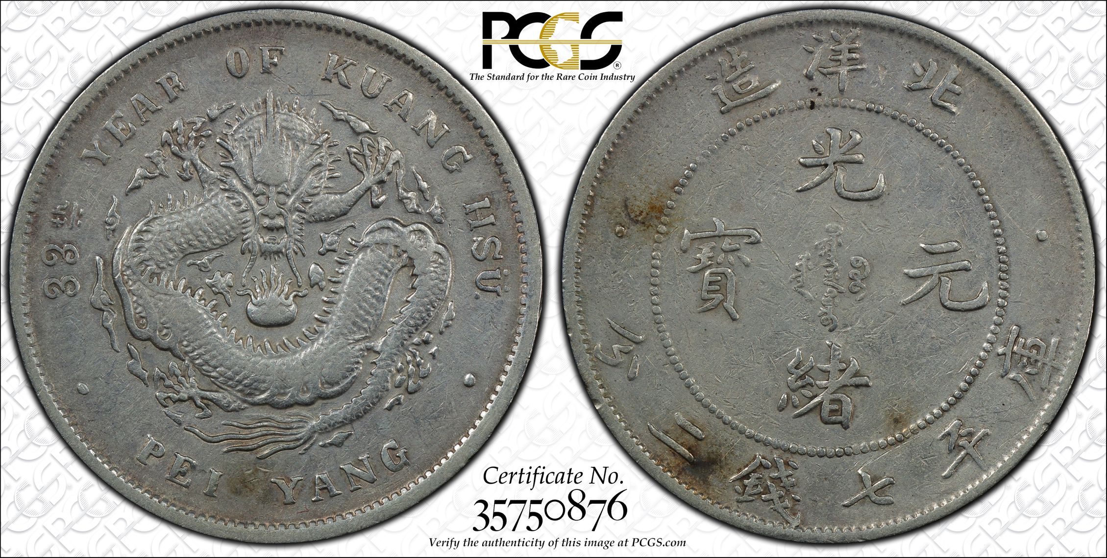 根据 PCGS 认证数据库,请求的认证编号被定义为以下内容: