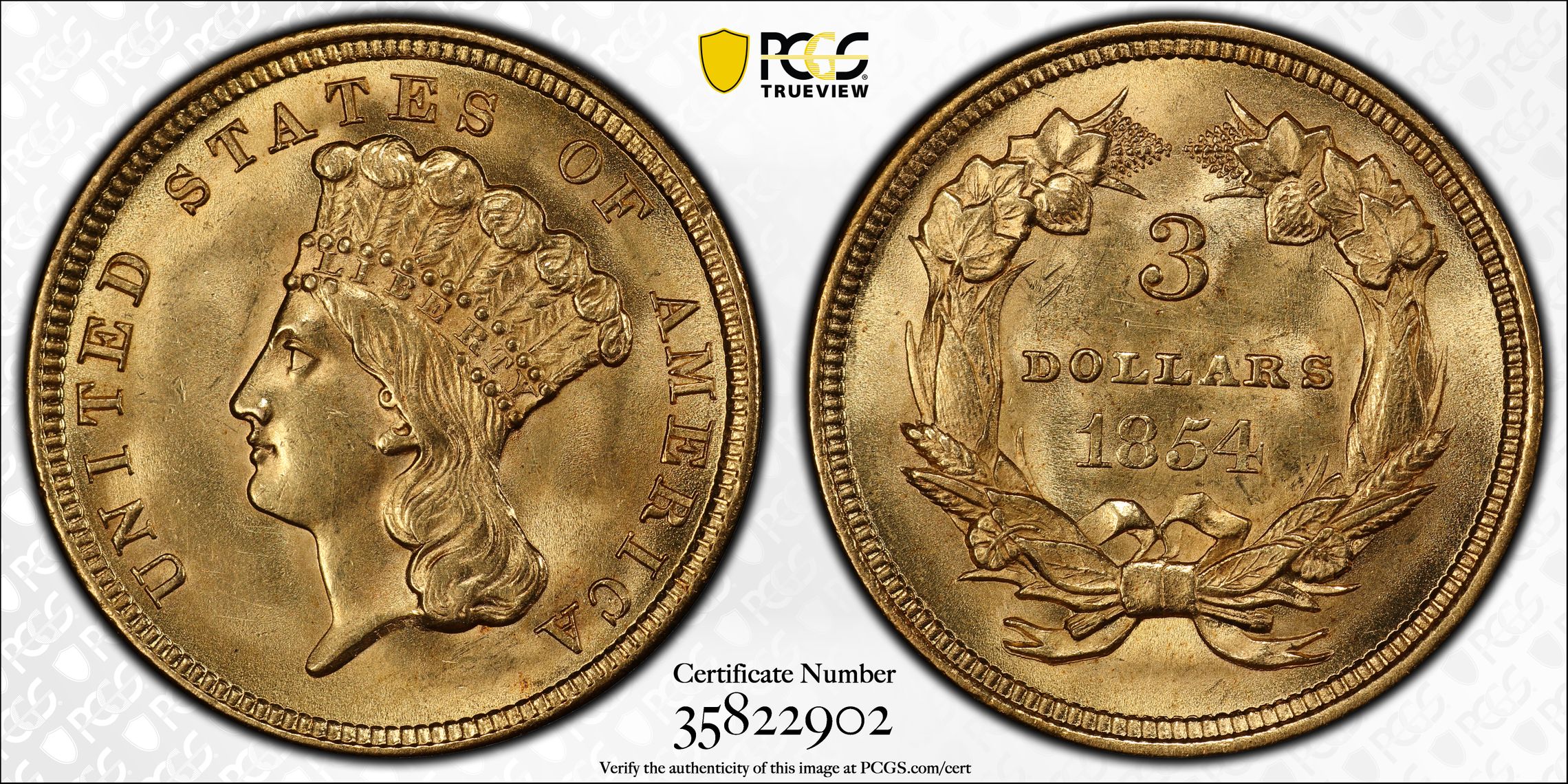 根据 PCGS 认证数据库,请求的认证编号被定义为以下内容: