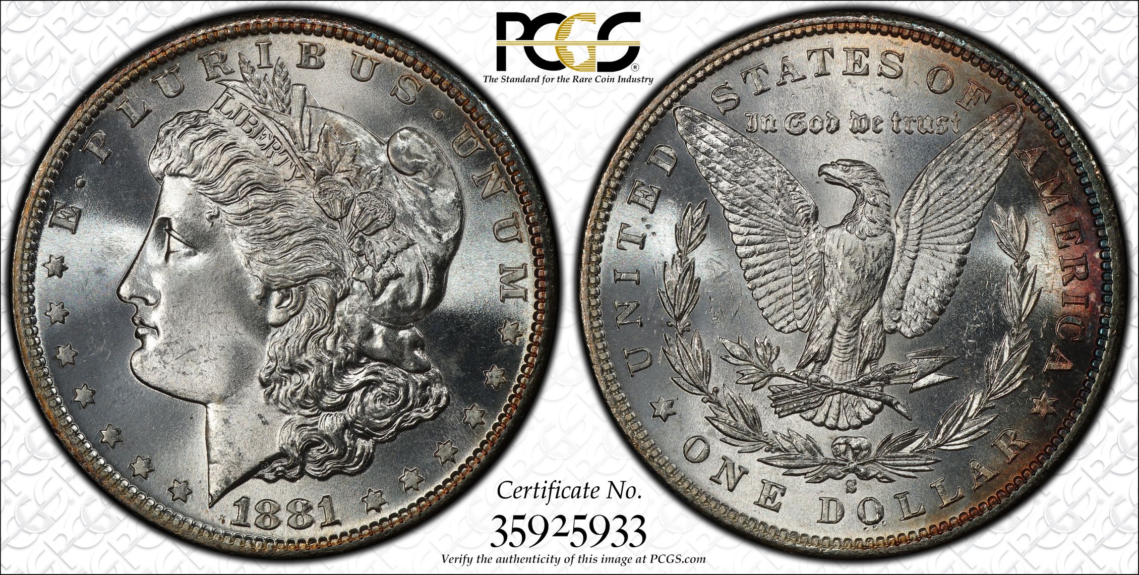 根据 PCGS 认证数据库,请求的认证编号被定义为以下内容: