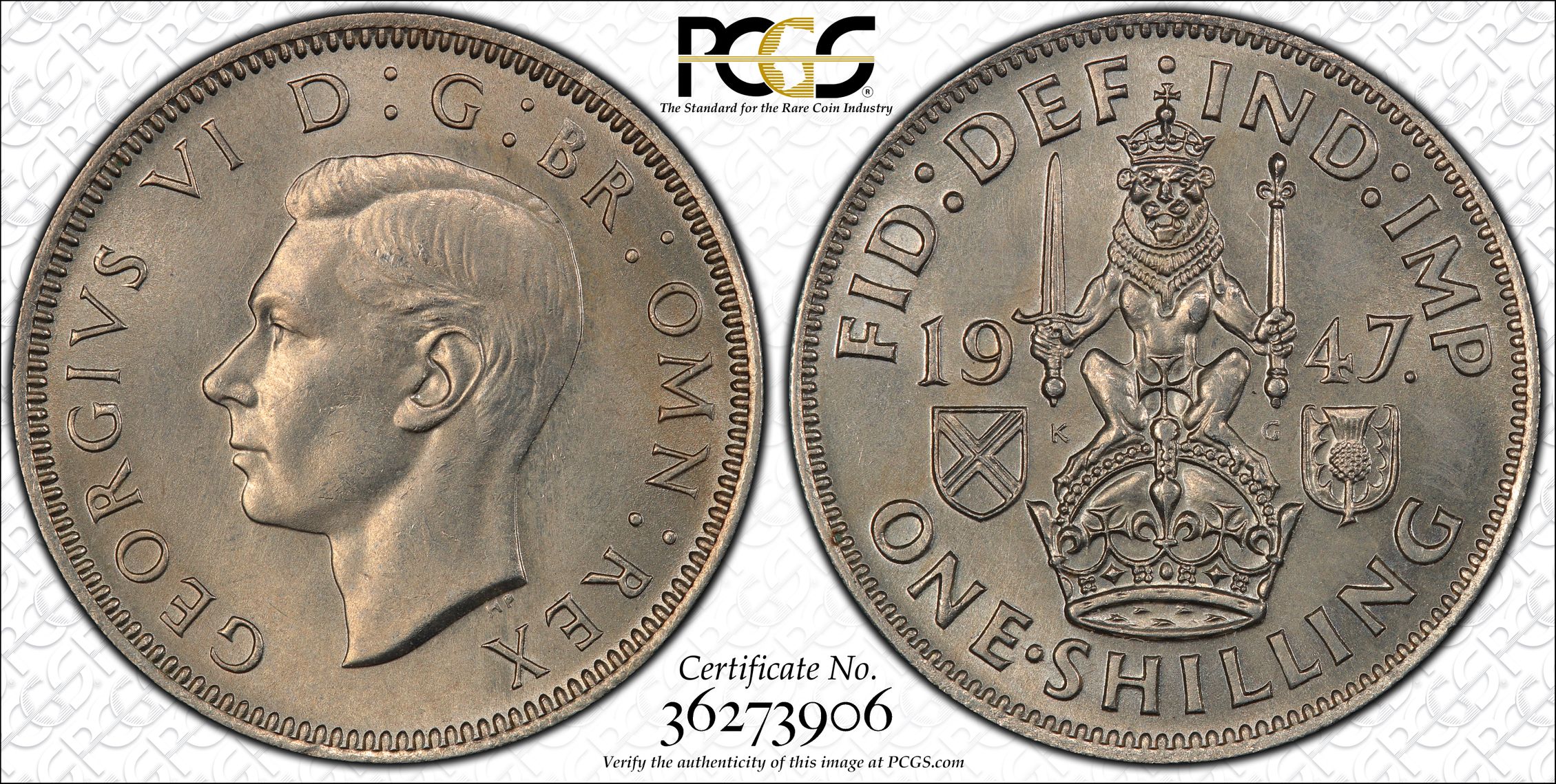 此证书是目前出现在 Mrtjet Set Registry库存和的一个set或多个set,其中包括 Mrtjet British KGVI Shillings