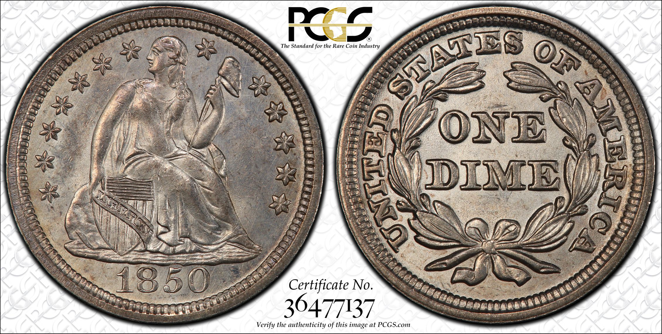 此证书是目前出现在 DLH Set Registry库存和的一个set或多个set,其中包括 D. L. Hansen Seated Dimes Circulation & Proof (1837-1891)
