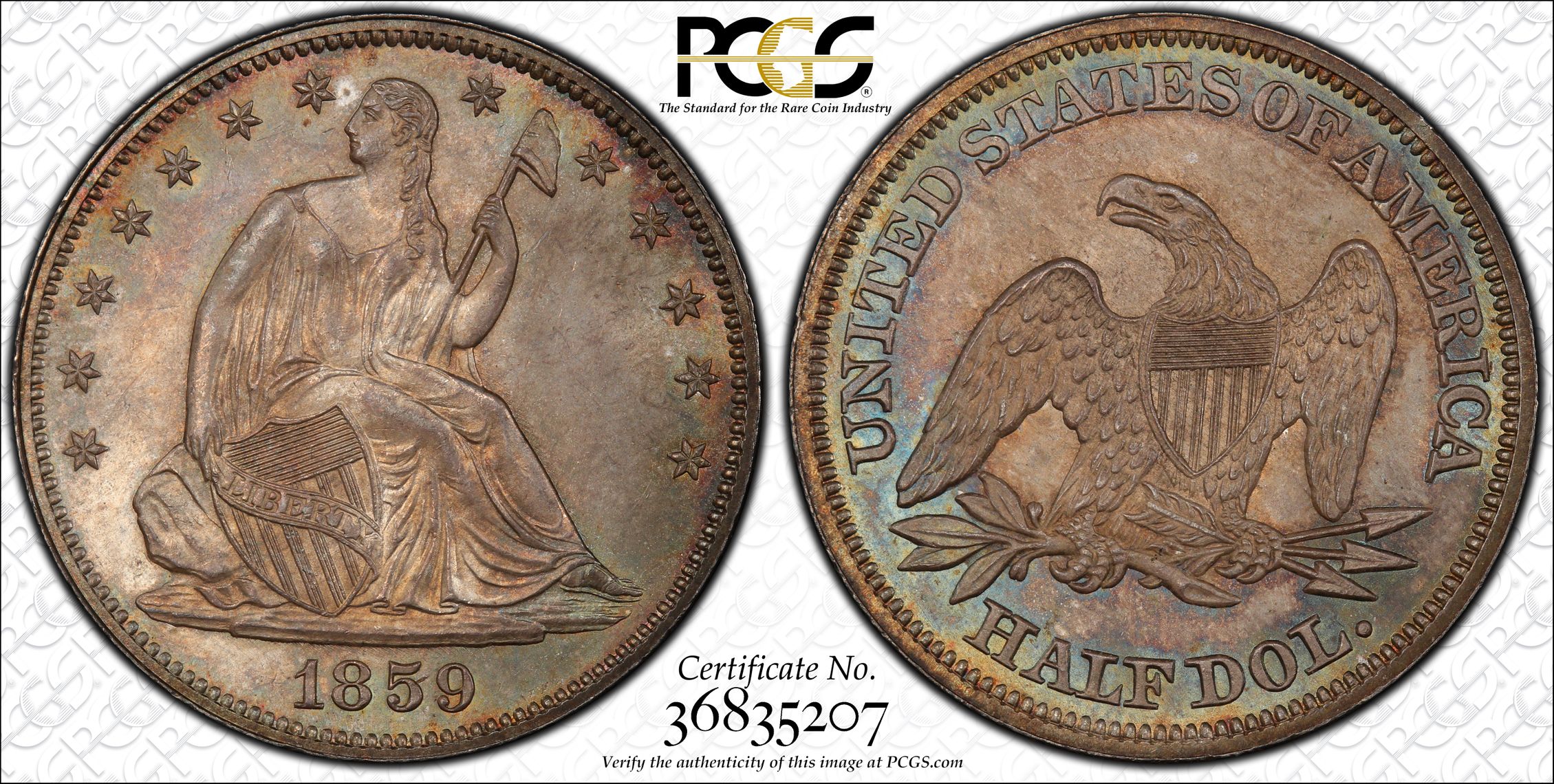 此证书是目前出现在 DLH Set Registry库存和的一个set或多个set,其中包括 D. L. Hansen Liberty Seated Half Dollars. (1839-1891)