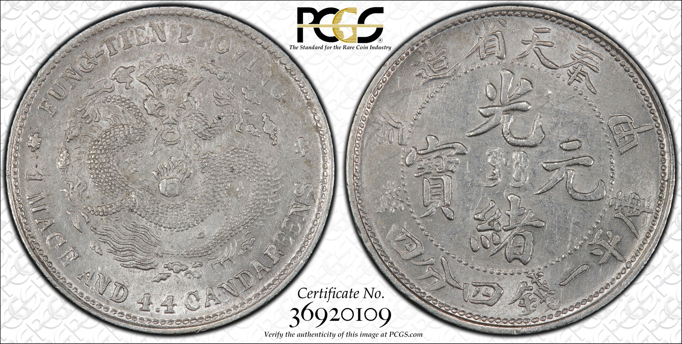 根据 PCGS 认证数据库,请求的认证编号被定义为以下内容: