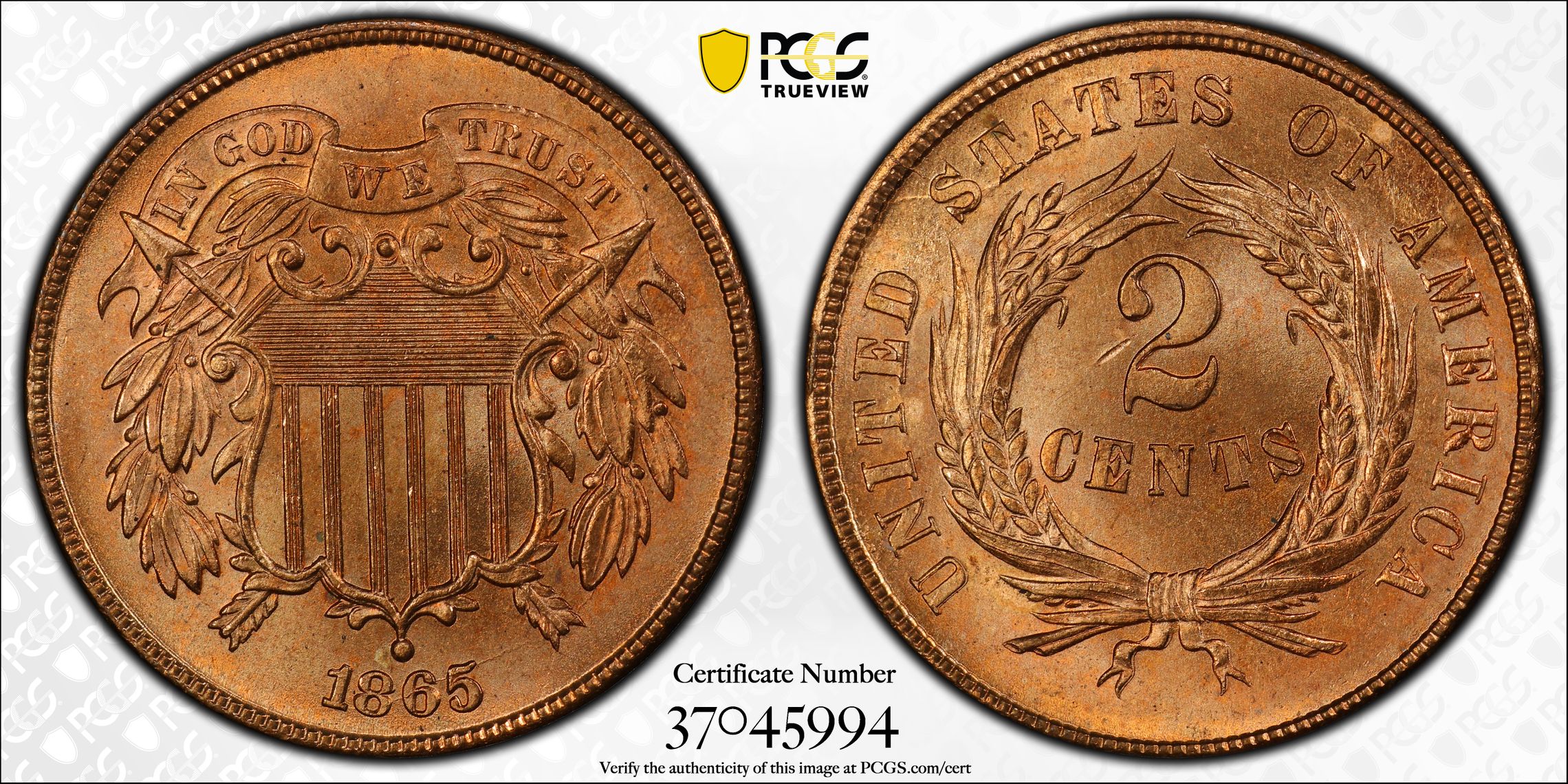 此证书是目前出现在 DLH Set Registry库存和的一个set或多个set,其中包括 D. L Hansen. Shield Two Cent Major Varieties (1864-1872)