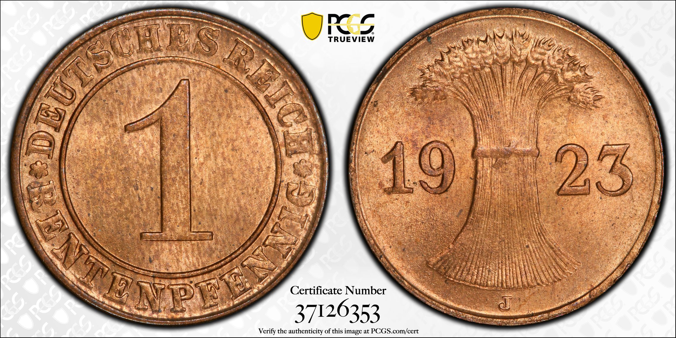 PCGS 钱币信息 | 认证编号 #37126353 - 1923-J Germany, Weimar Rep. Rtpfg