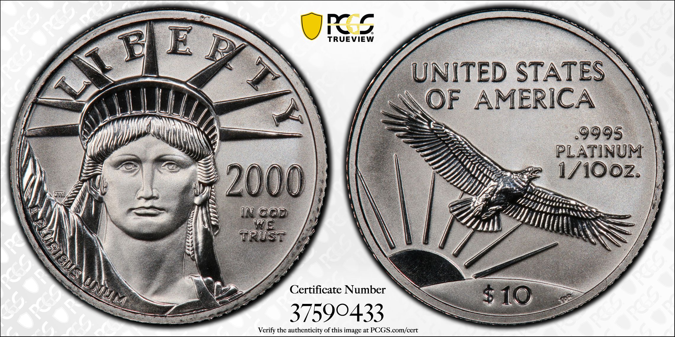此证书是目前出现在 schmitz7 Set Registry库存和的一个set或多个set,其中包括 Michigan $10 Platinum Eagles