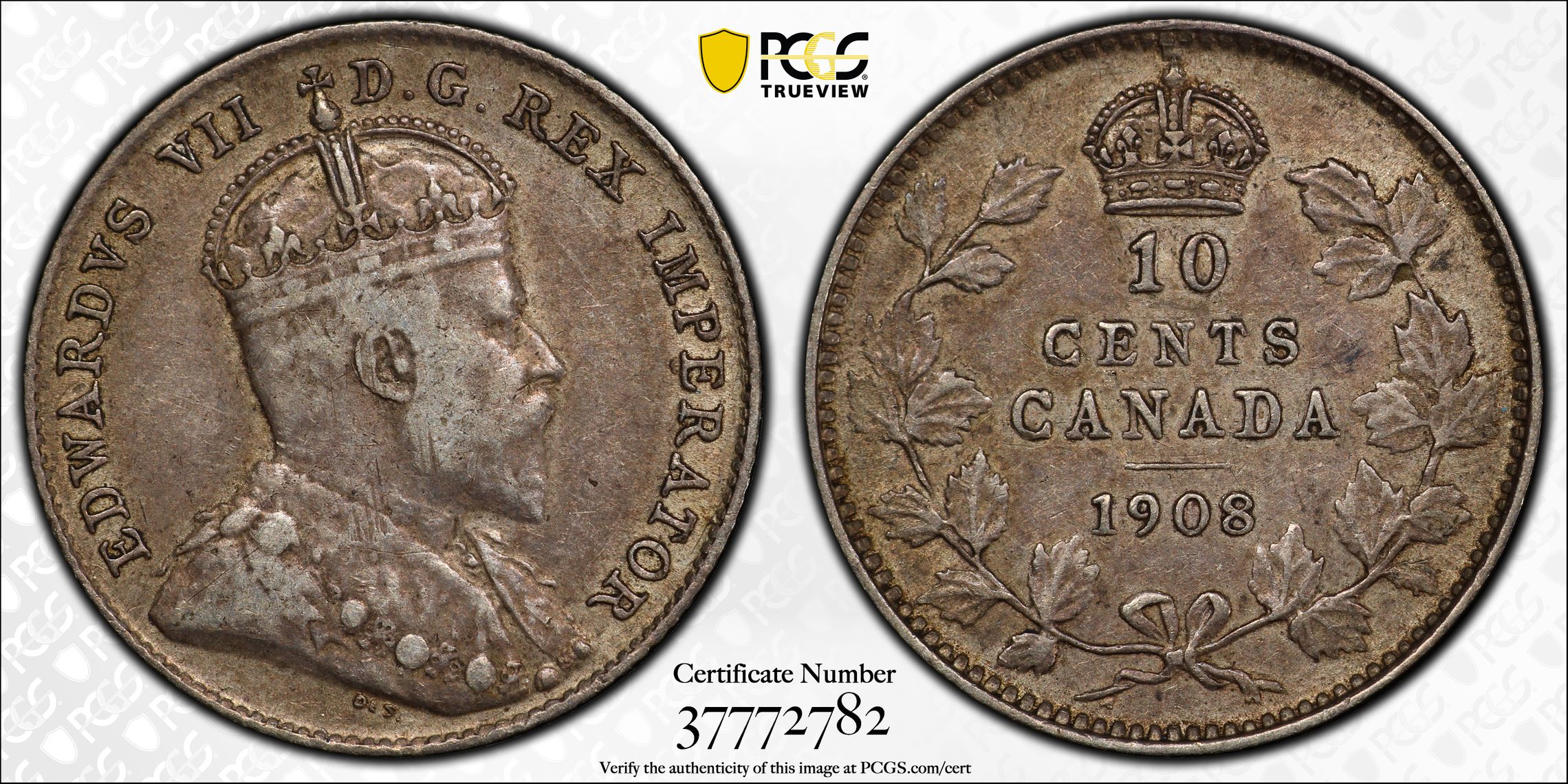 此证书是目前出现在 Dimeman Set Registry库存和的一个set或多个set,其中包括 Dimeman's Complete Canadian Dimes