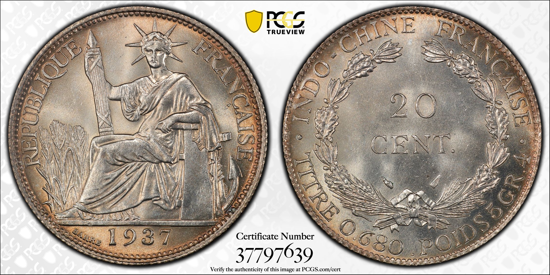 根据 PCGS 认证数据库,请求的认证编号被定义为以下内容: