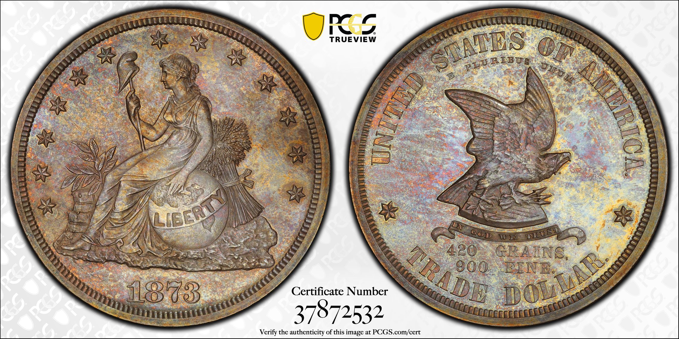 此证书是目前出现在 SilverCal Set Registry库存和的一个set或多个set,其中包括 SilverCal's Trade Dollar Patterns