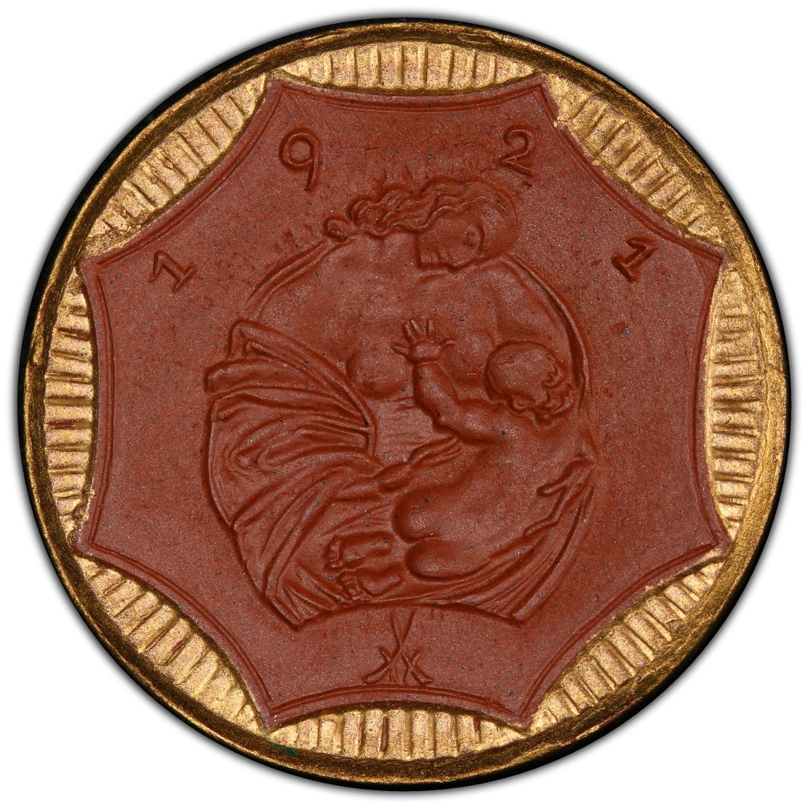 Jaeger-N59 Saxony Notgeld Brown Porcelain Gilt Rim