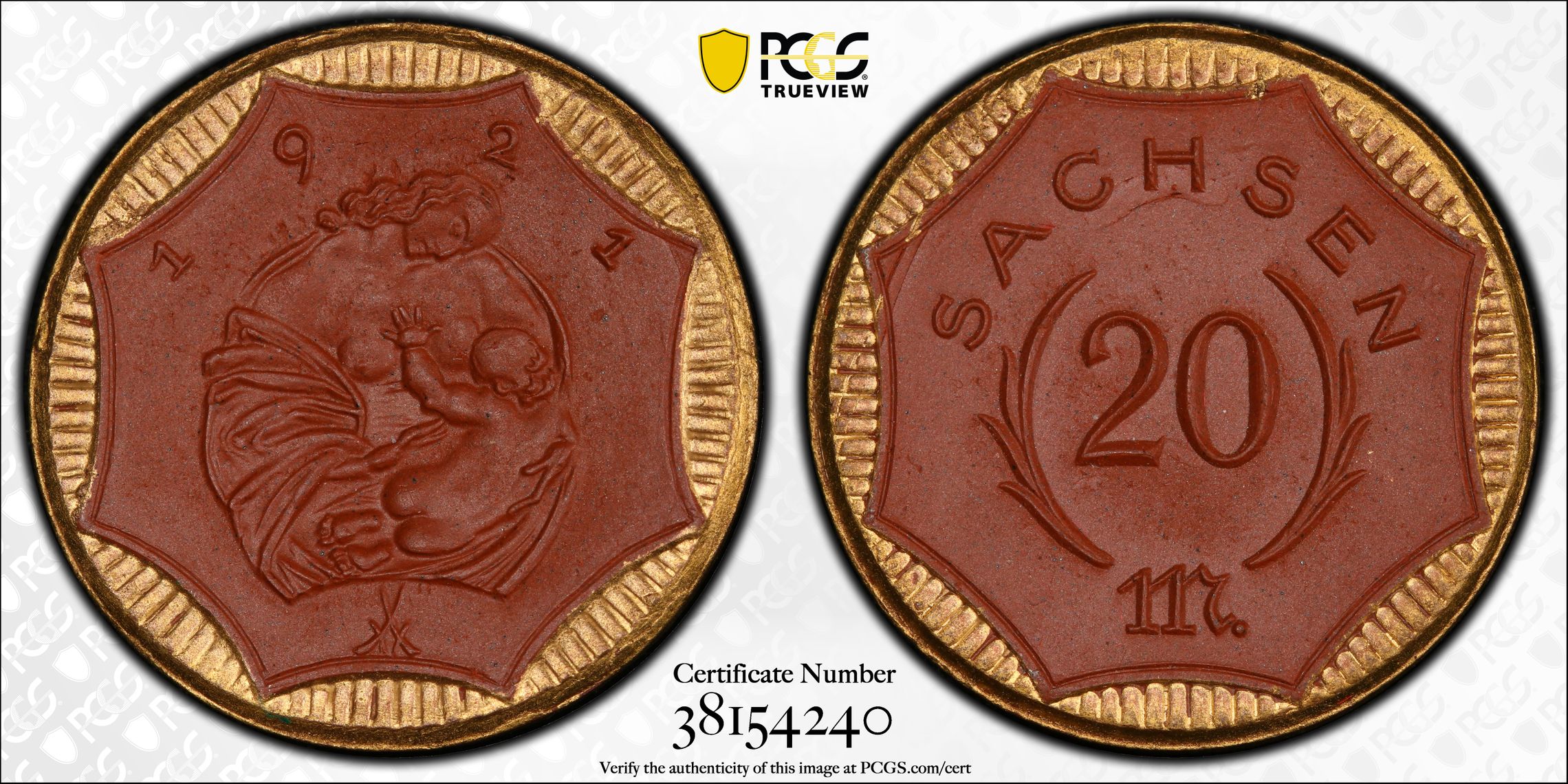 PCGS 钱币信息 | 认证编号 #38154240 - 1921 Germany, Weimar Rep. 20 Mk