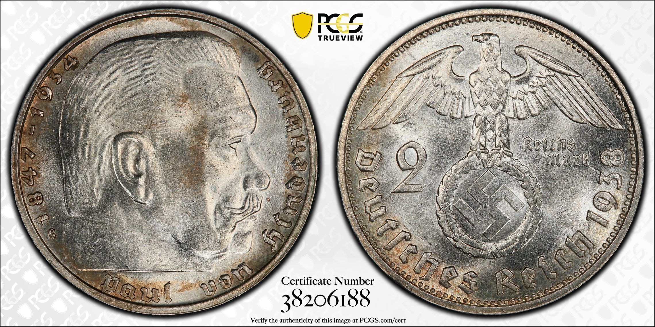 根据 PCGS 认证数据库,请求的认证编号被定义为以下内容: