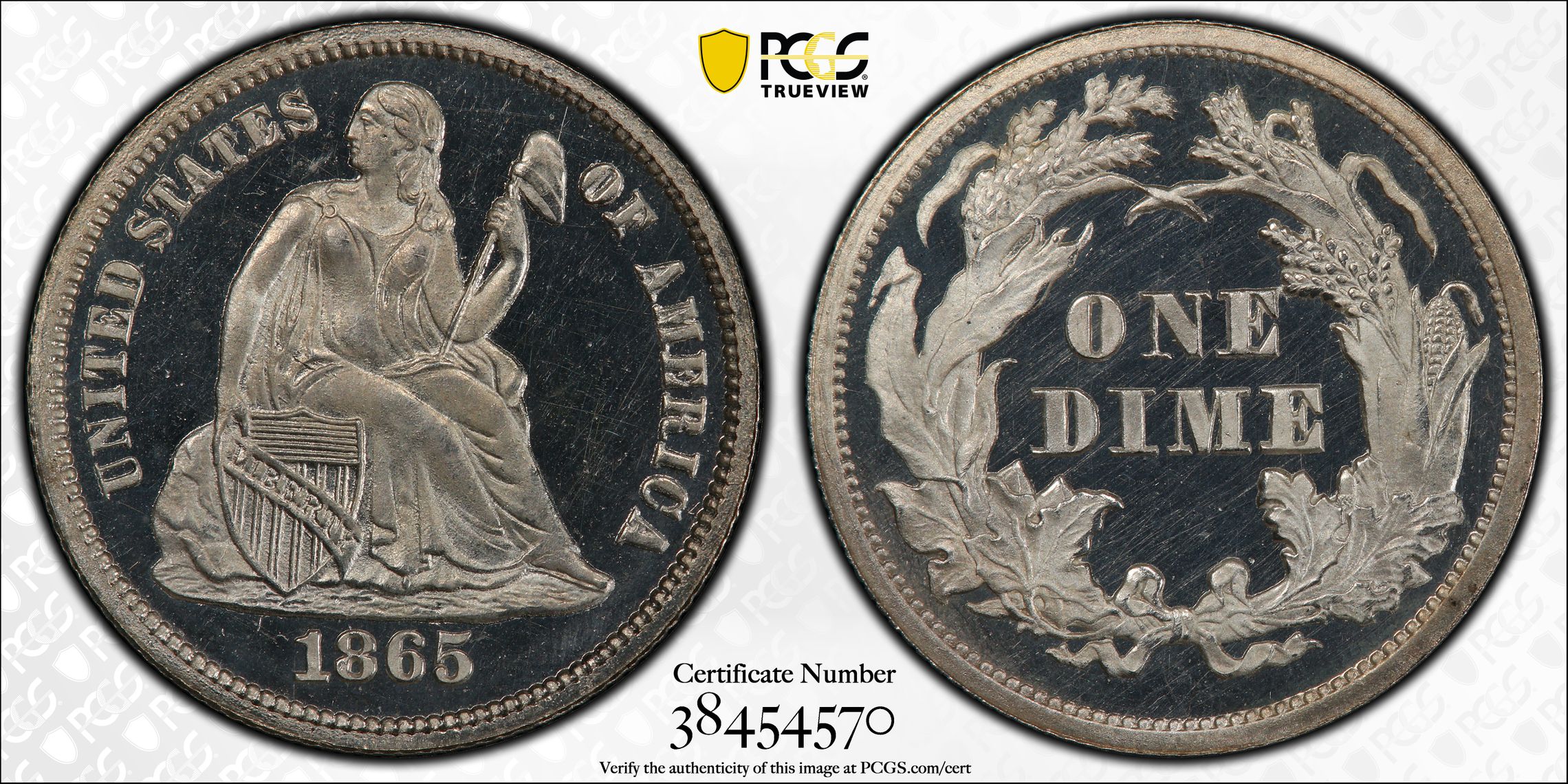 此证书是目前出现在 DLH Set Registry库存和的一个set或多个set,其中包括 D. L. Hansen Seated Dimes Circulation & Proof (1837-1891)