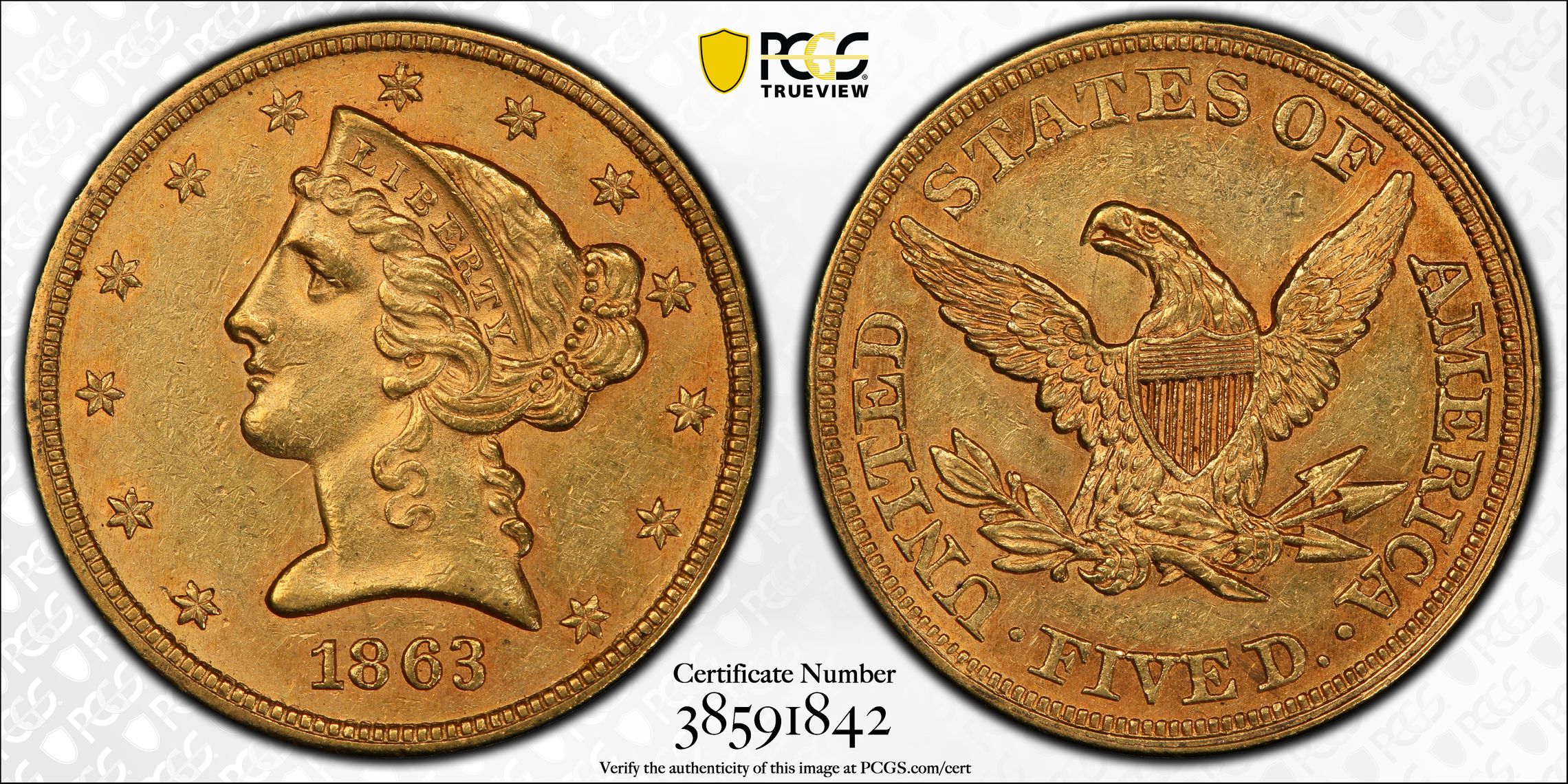 此证书是目前出现在 DLH Set Registry库存和的一个set或多个set,其中包括 D. L. Hansen $5 Gold Complete (1795-1929)
