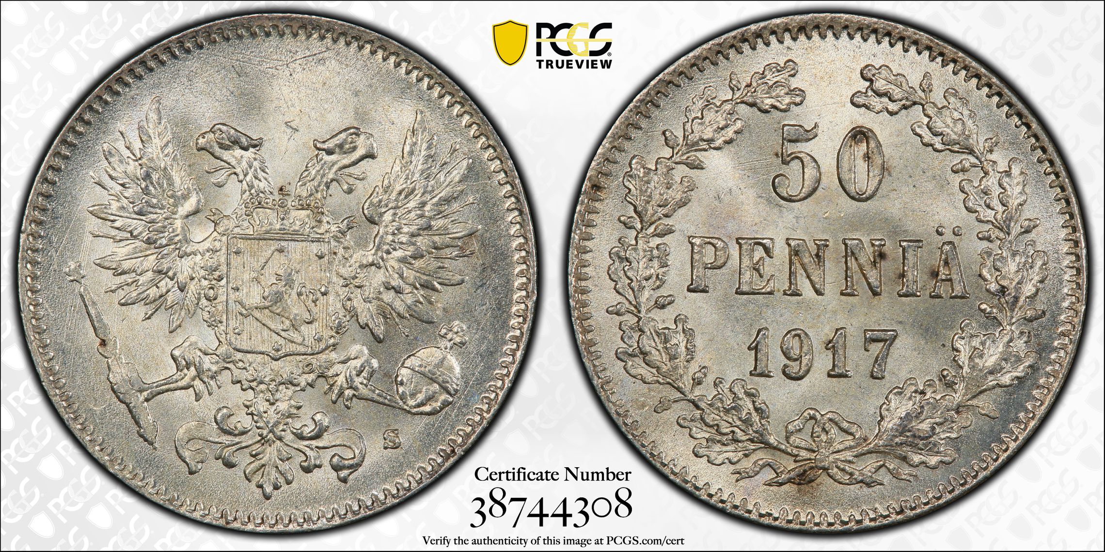 根据 PCGS 认证数据库,请求的认证编号被定义为以下内容: