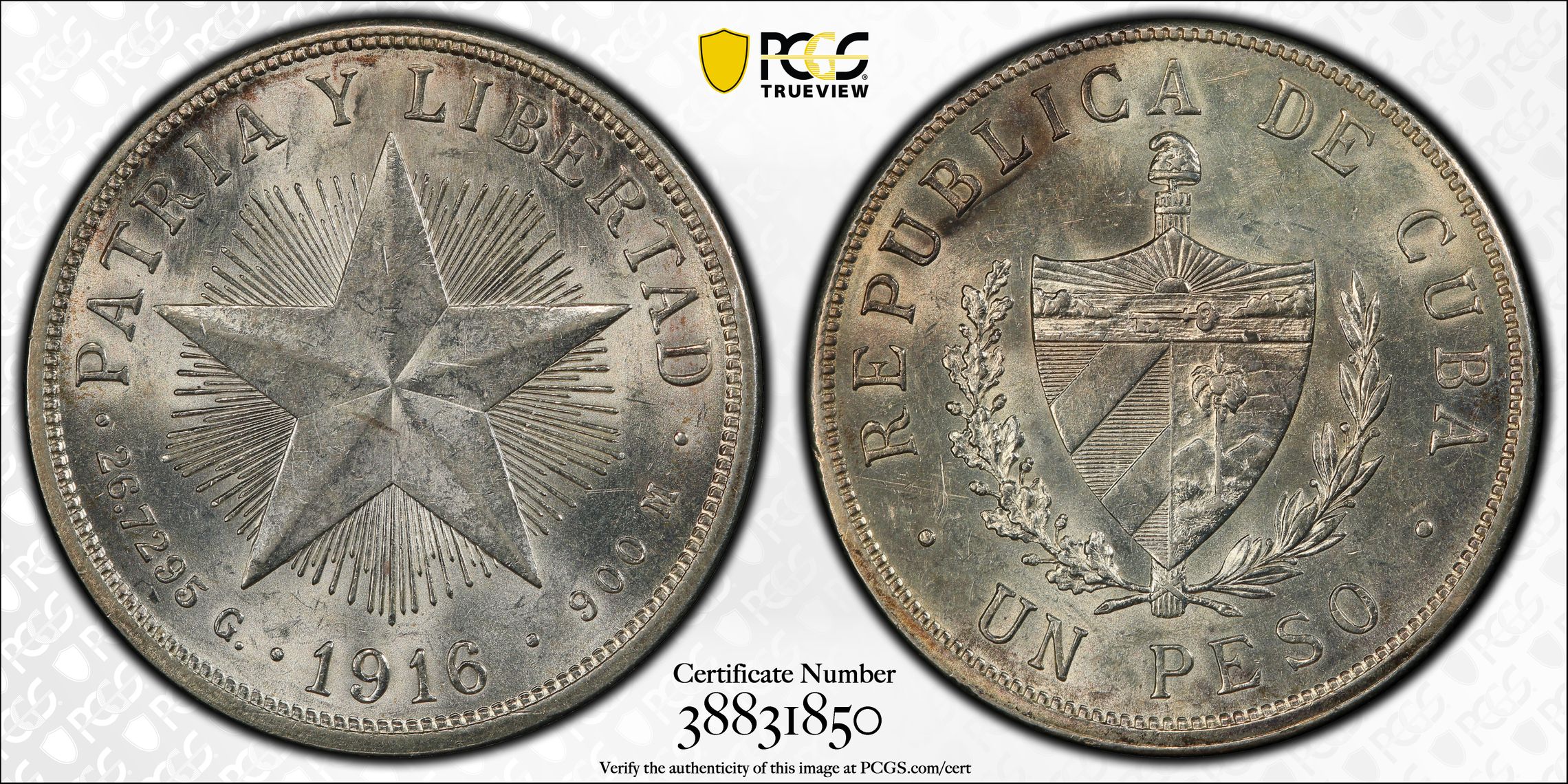 根据 PCGS 认证数据库,请求的认证编号被定义为以下内容:
