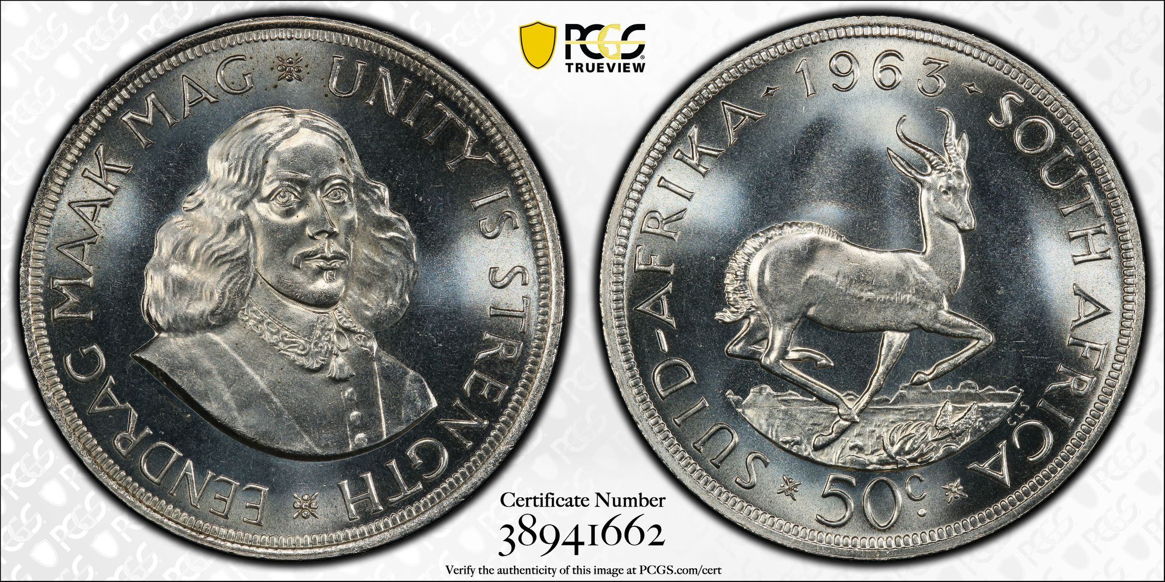 此证书是目前出现在 Bill "Old Coin Dawg" Set Registry库存和的一个set或多个set,其中包括 Bill Old Coin Dawg - silver So. African half dollar
