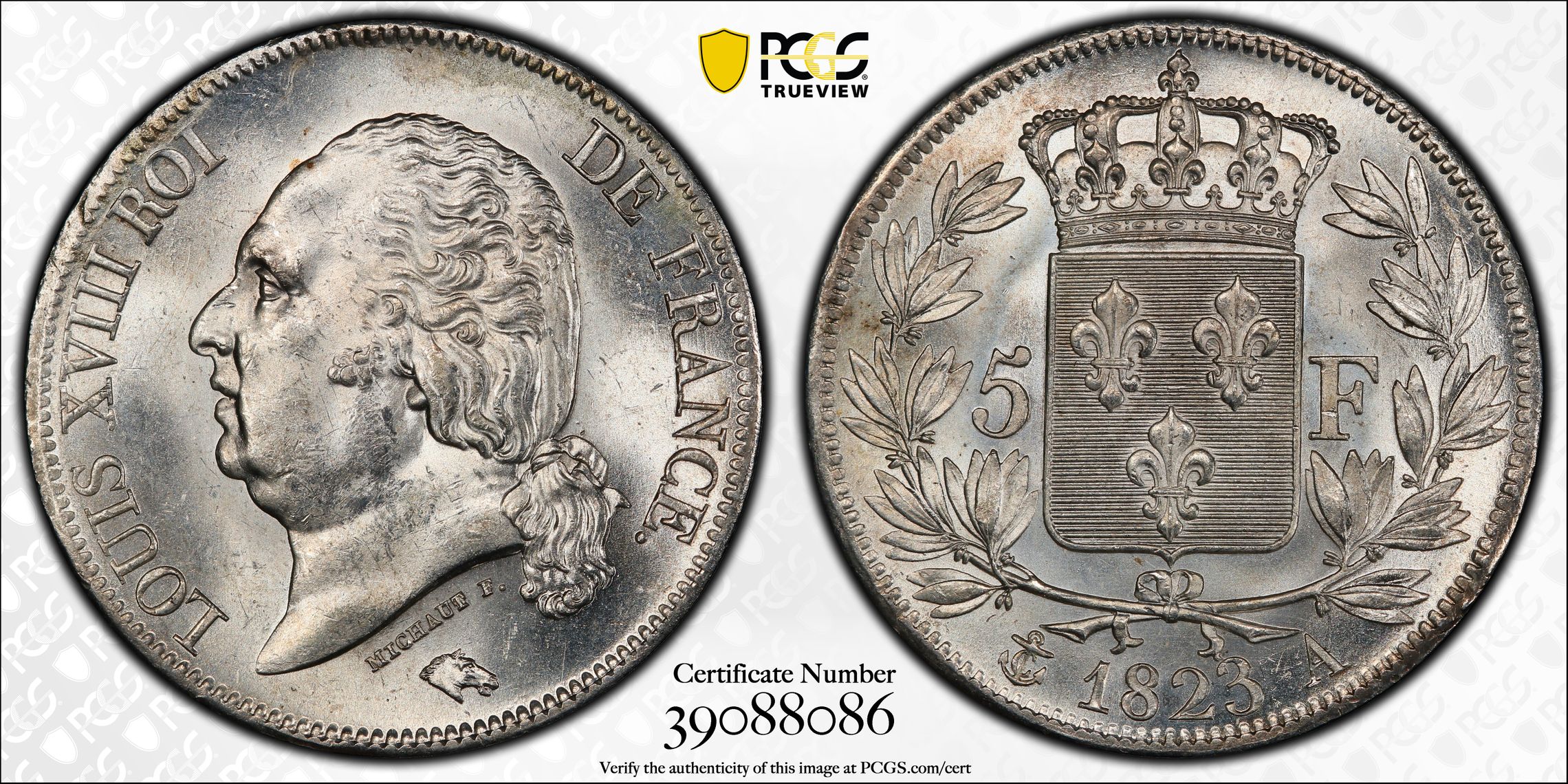 根据 PCGS 认证数据库,请求的认证编号被定义为以下内容: