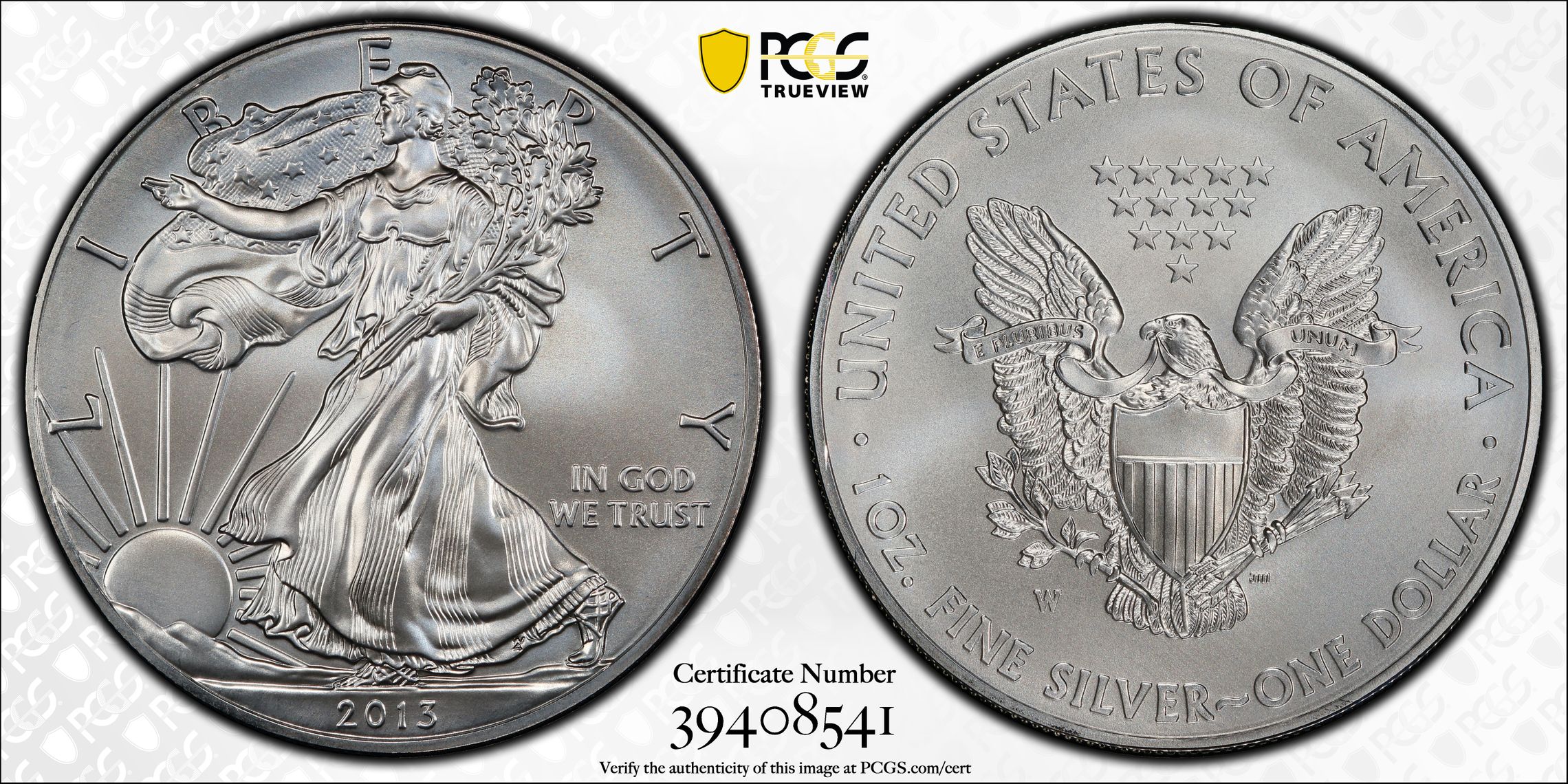 此证书是目前出现在 Rjoline Set Registry库存和的一个set或多个set,其中包括 Silver Eagle Slabs