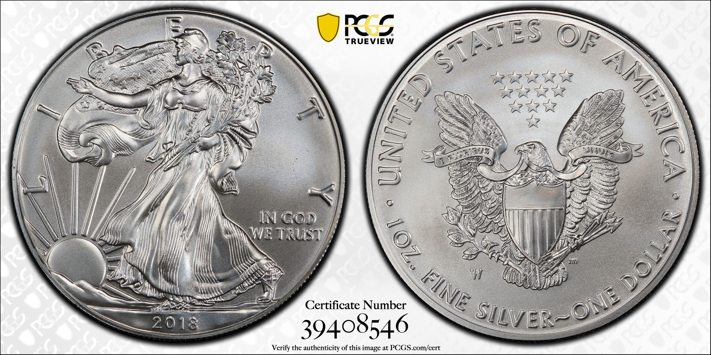 此证书是目前出现在 Rjoline Set Registry库存和的一个set或多个set,其中包括 Silver Eagle Slabs